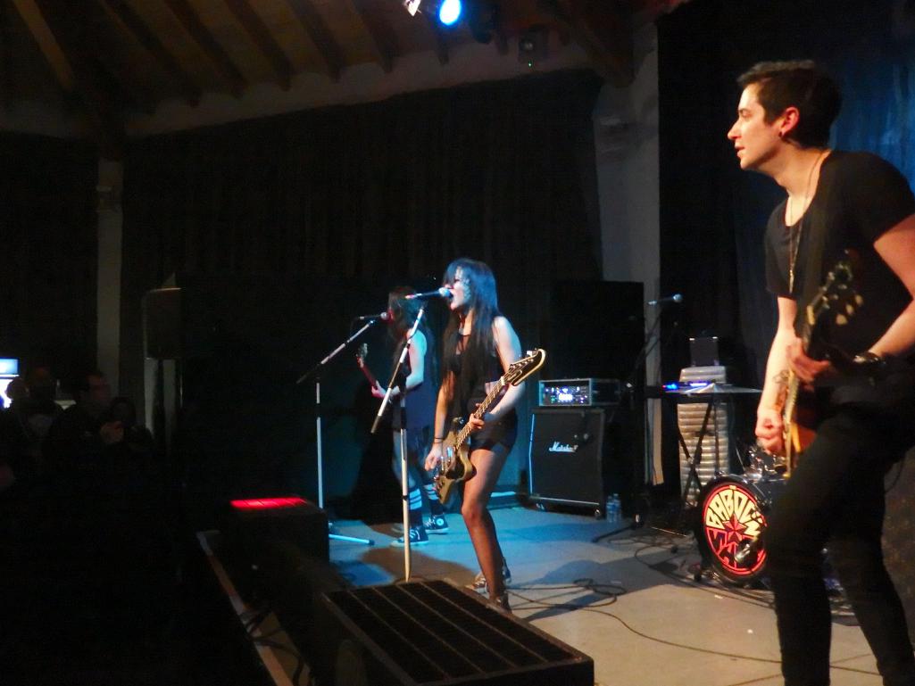standen Electric Love auf der Bühne. Bei dem Namen dachte ich zunächst an T.Rex und erst in zweiter Linie an das Electronic-Festival gleichen Namens. Stimmt aber beides nicht. In der Selbstbeschreibung steht „very sexy und very tough“ und das stimmt schon. Zwei Mädels und zwei Kerle. Etwas Donnas, etwas Ramones, aber leider auch etwas boring Pop- und Emopunk. Zugegeben, es ist auch schwer, vor einer Band wie The Baboon Show zu bestehen. Da kann man eigentlich nur verlieren. Aber lesen wir die Selbstbeschreibung weiter: „Es ist eng. Es ist laut. Aggression liegt in der Luft. So wie sich das für Punkrock gehört, wenn er wild übersteuert aus den Boxen quillt.“ Naja, wild übersteuert war das nicht, für meine Ohren etwas zu brav, aber was weiß ich schon. Aber eng und laut war es zumindest. Frontfrau Denise Wilson machte ihre Sache außerdem recht gut und so blieb doch eine große Anzahl der Zuschauer in der Halle und schaute sich das Spektakel an. Ein paar Ansagen gegen AfD und Trump und ein paar veritable Hits, wie Without a Sound, Heroine und das nette Maybe Baby. Mal gespannt, wie sich die Band weiterentwickelt. Bisher haben sie nur ein Album draußen, Potential ist vorhanden, als Anheizer eine gute Wahl.