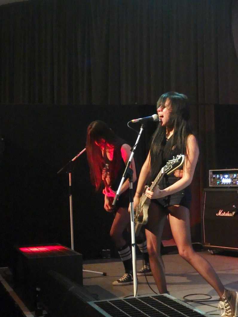 Was danach bei The Baboon Show abging, ist kaum in Worte zu fassen. Um eine Standardphrase zu dreschen: Ich habe Neunlirchen noch nie so brennen gesehen, wie in dieser Nacht. Es ist kein Geheimnis, dass die leider immer noch stark unterbewertete Band zu den besten Livebands aller Zeiten zählt. Das liegt vor allem am extravaganten Auftreten ihrer Sängerin Cecilia Boström. Ihre Heimat ist definitiv die Bühne. Um genau zu sein: die vorderen Monitorboxen von denen aus sie das Publikum antreibt. Auf eine sehr angenehme Art, denn das Publikum ist bei Hits wie Class War, The Shame und ihrem Überhit This Is How Your Story Ends auch dem Pogo sehr zugetan. Lieder wie Working All Night and Day müssen auch gar nicht lange eingeübt werden, das Publikum kann sie auch so mitsingen, wie Frau Boström schnell bemerkt. Ein-zwei Mal verirrt sich die Dame auch ins Publikum, was Teile der vorderen Reihen zu Mikrofonkabelträgern macht. Gut 90 Minuten geben die Schweden alles, um das Publikum müde zu machen. Me, Myself and I, Punk Rock Harbour, Faster Faster Harder Harder, You Got a Problem Without Knowing It– die Liste der Songs ist endlos.