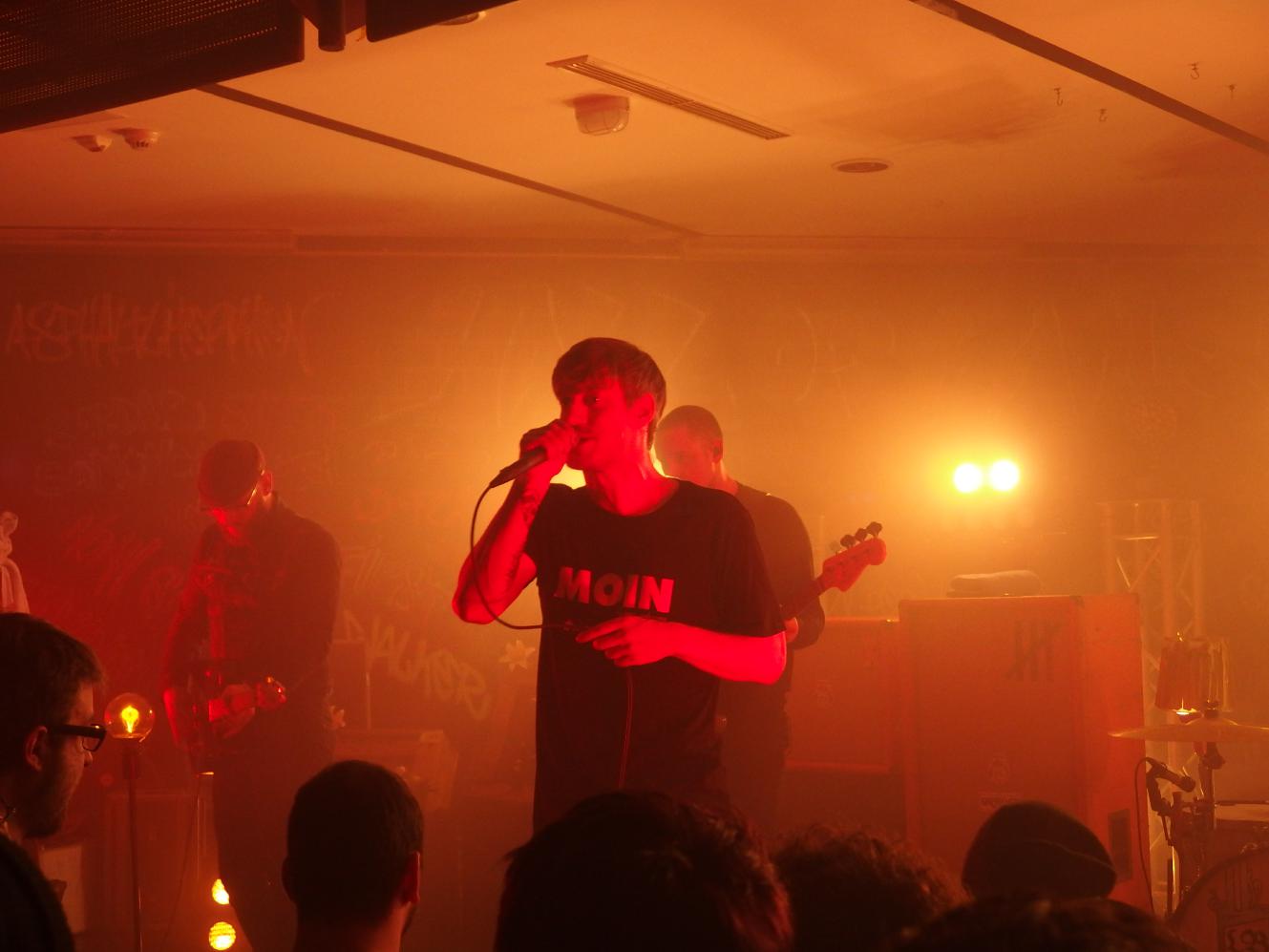 Doch vor der Hauptband zeigten zunächst Duesenjaeger aus Osnabrück ihr Können. Ein absolut passendes Tourpackage, denn auch duesenjaeger zählen zu diesen neuen melancholischen Punkbands, die sich viel bei Rachut und bei Fliehende Stürme abgeguckt haben. Wobei duesenjaeger noch ein kleines bisschen düsterer sind und insbesondere die Stimme auch dunkler ist, als dies bei Turbostaat der Fall ist. Auf Grund des knallharten Zeitplans mussten sie ihre Setlist etwas zusammenstreichen, dennoch blieben Bandklassiker wie Las Palmas OK, Nerdist Breakdown und Grabeland natürlich erhalten. duesenjaeger überzeugten sowohl Publikum als auch den Rezensenten, der nicht übel Lust hätte, auch einen Headliner-Gig von ihnen zu besuchen.
