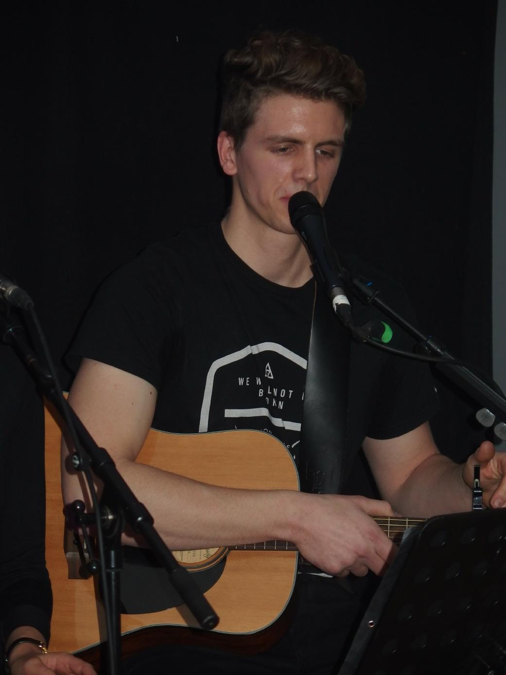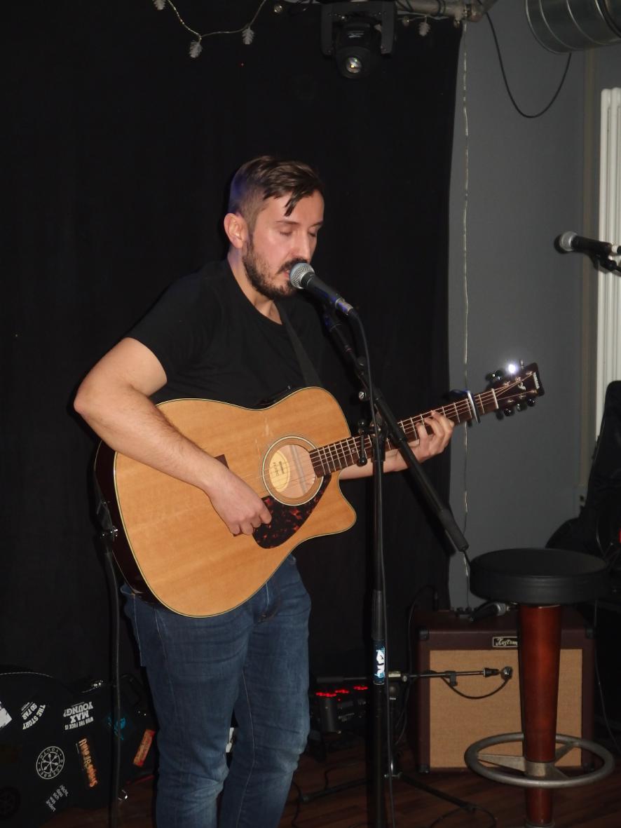 Einer der Gründe, warum dieser Artikel unbedingt erscheinen muss, ist natürlich Citizen Tim. Dieser „son of a gun“ war früher in diversen Hardcore-Bands unterwegs und versucht sich nun als Solokünstler. Bereits im August habe ich dem jungen Mann ein nettes Review über seine EP Human Circus (hier) geschrieben, für das er sich auch artig bedankte. Obwohl er sehr umtriebig war, hatte ich es doch leider bisher nicht geschafft, ihn live zu sehen. Nun beim vermutlich letzten Konzert 2016 (weiß nicht, ob ich es morgen zur Nachtmusik schaffe) gelang es mir endlich, den netten Menschen zu sehen und auch etwas besser kennen zu lernen. Anekdotenreich führte er durch ein etwas mehr als halbstündiges Set, bestehend aus Liedern von der EP sowie weiteren eigenen Songs. Hervorstechend natürlich The Feeling of Skins on My Bone, Snowballs und Class of 1999 von der EP. Waving in the Marching Band, neben John, bei dem ich wohl noch draußen war, einer meiner favoriten von der EP, wurde leider nicht gespielt. Dafür aber ein Lied über eine Beinaheschlägerei namens Barfight mit einer netten Pointe sowie die Saarbrücken-Hymne The Vein of This Town (die auch die dunklen Ecken nicht auslässt). Auch schön: Heroes, entgegen der Tradition an diesem Abend kein Cover. Toller Auftritt, der auch nicht durch die Gespräche des Publikums, die normalerweise charakteristisch für den Abend sind, gestört wurde. Naja, irgendwann wurde auch die Tür zum Vorraum geschlossen, vielleicht damit Marco, dessen Bruder eigentlich Tim heißt (und auch vor Ort war), beim Spielen nicht gestört wird.