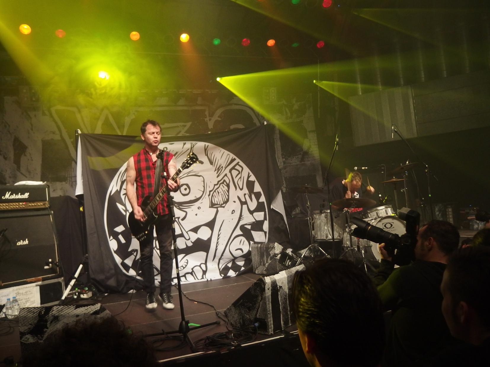 Wenig arrogant lobte sie das Publikum und ließ auch ganze Passagen mitsingen. Ergriffen vergaß Sänger Axel Kurth (und einziges Originalmitglied) auch mal den Text. Ich glaube es war beim traurigen Sterbehilfe-Song Egon. Überrascht auch, wie lange die Alerta Antifascista-Schreie weitergesungen wurden, bis die Band mit Gute Freunde den Gesang unterbrach. Insgesamt sagenhafte 21 Stücke wurden gespielt, als leztes reguläres Stück die Mitsinghymne Die letzte Sau. und die halte weiter. Statt Zugaberufen wurde eben immer wieder de Refrain wiederholt,. Auch cool. Danach folgten noch drei Zugaben: Apocalypso (laaaaangweilig) machte den Anfang. Es folgte Kein Gerede, unzensiert und in voller Länge. Größte Crowd-Reaction war natürlich hier auszumachen. Immer noch ein klasse Song. Den Schluss machte schließlich der Alltime-Klassiker Alte Frau .