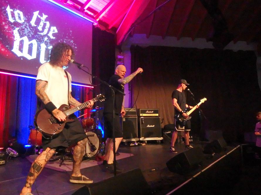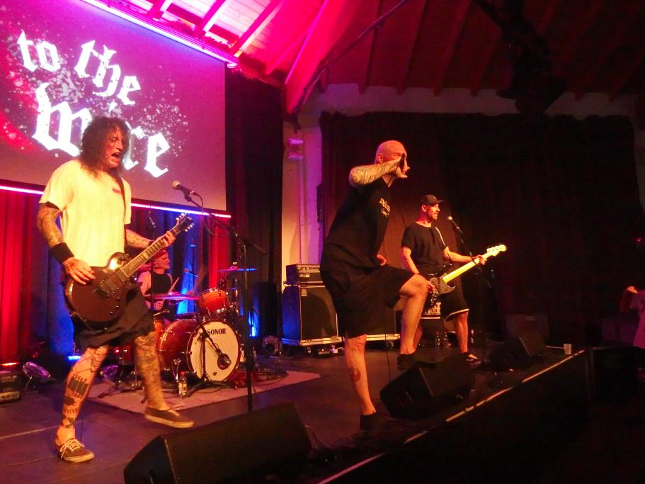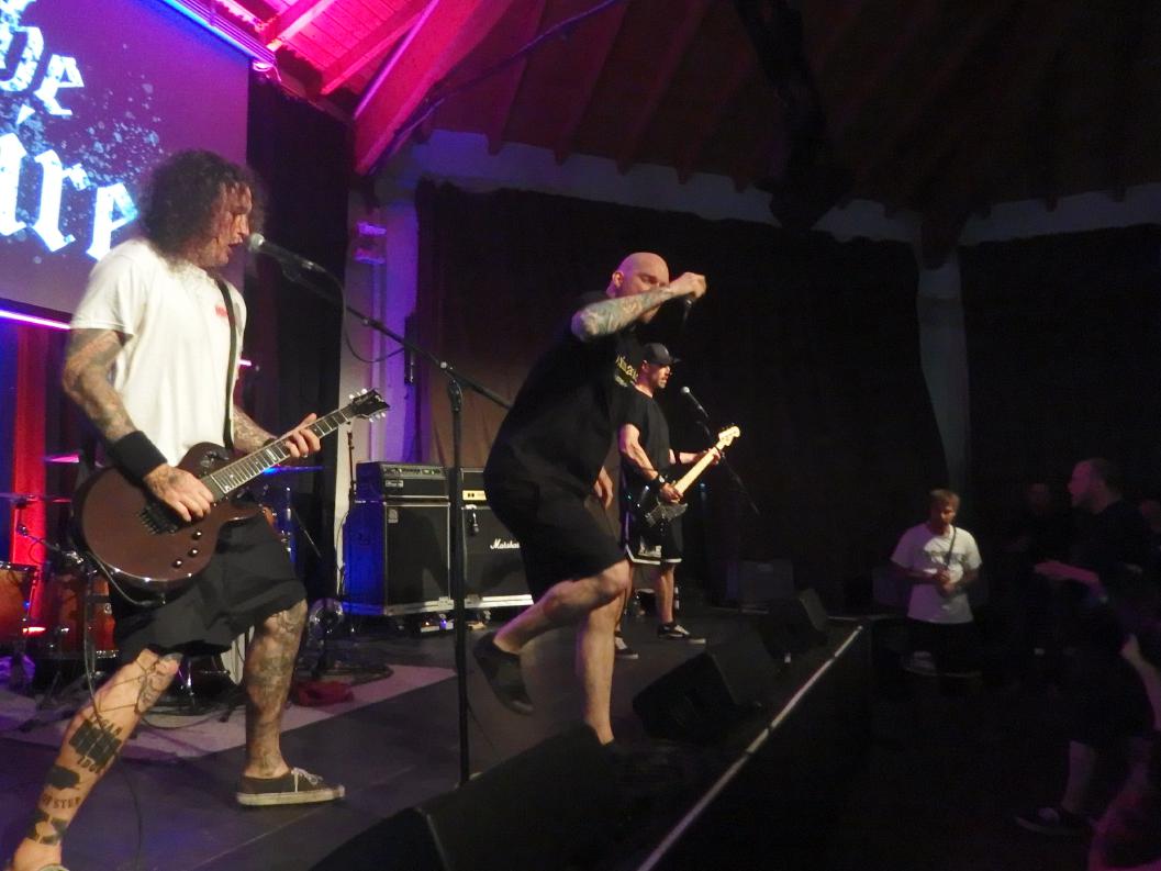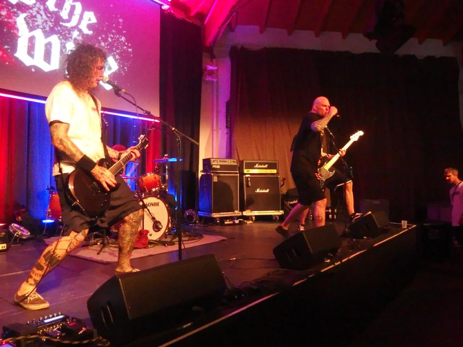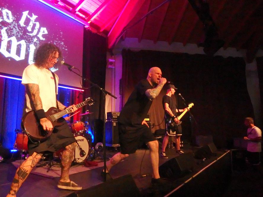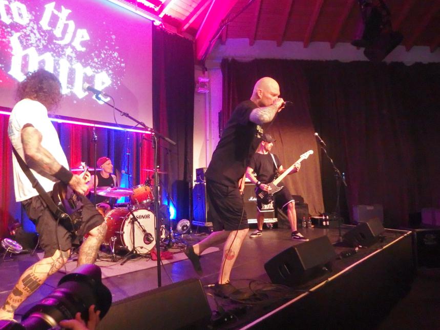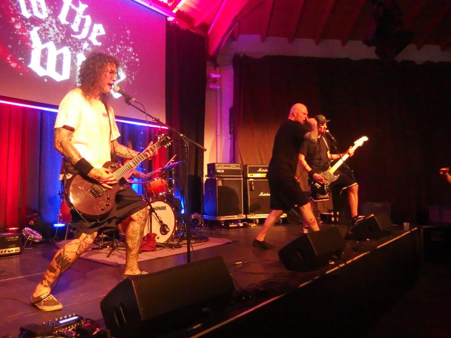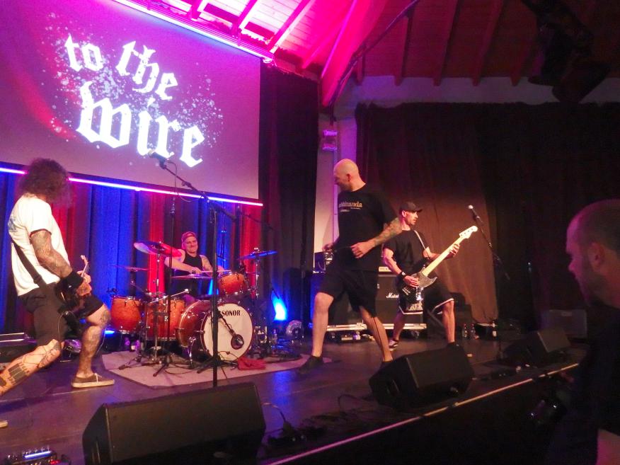 To the Wire waren dann doch eine kleine Überraschung für mich. So verblüfften doch letztens Tony Gorilla mit der Ankündigung einer Reunion, allerdings mit neuem Sänger. Deren alter Sänger Chris hat dafür als neues Projekt To the Wire ins Leben gerufen (wir berichteten). Zu den Klängen von Country Roads betrat die Band dann die Bühne und es gab keine Kompromisse mehr. Sehr schöner Old-School-Hardcore mit dezenter Metalkante. Mit Songtiteln kann ich euch leider nicht dienen, die Setlist verschwand während des Gigs, was für ein paar kleinere Schwierigkeiten sorgte. Aber iohre erste Single Desperate Times haben sie sicherlich gespielt. Ansonsten war die Band sichtlich bewegungsfreundlich und Chris besuchte auch zweimal das Publikum. Er war auch sichtlich angetan für Abhinanda veröffentlichen zu dürfen und trug ein T-Shirt der Band. Auch den Unity-Gedanken hob die Band hervor und erwähnte auch seine Freunde von Stay Free, von denen einige im Publikum waren. Klare Ansagen gegen AFD und Konsorten gabs auch.