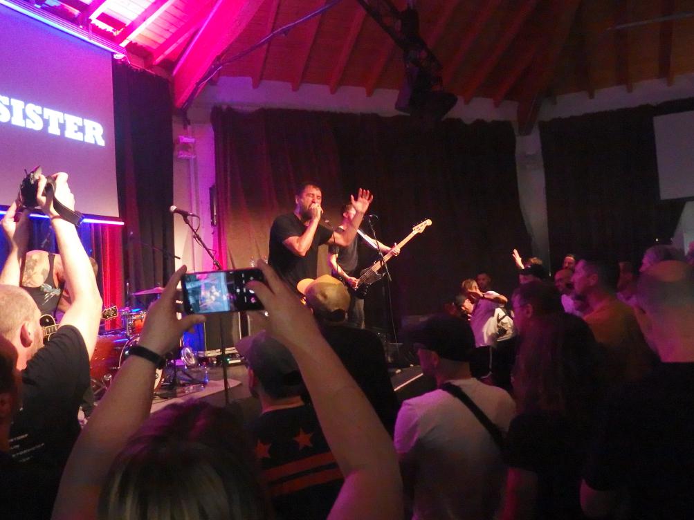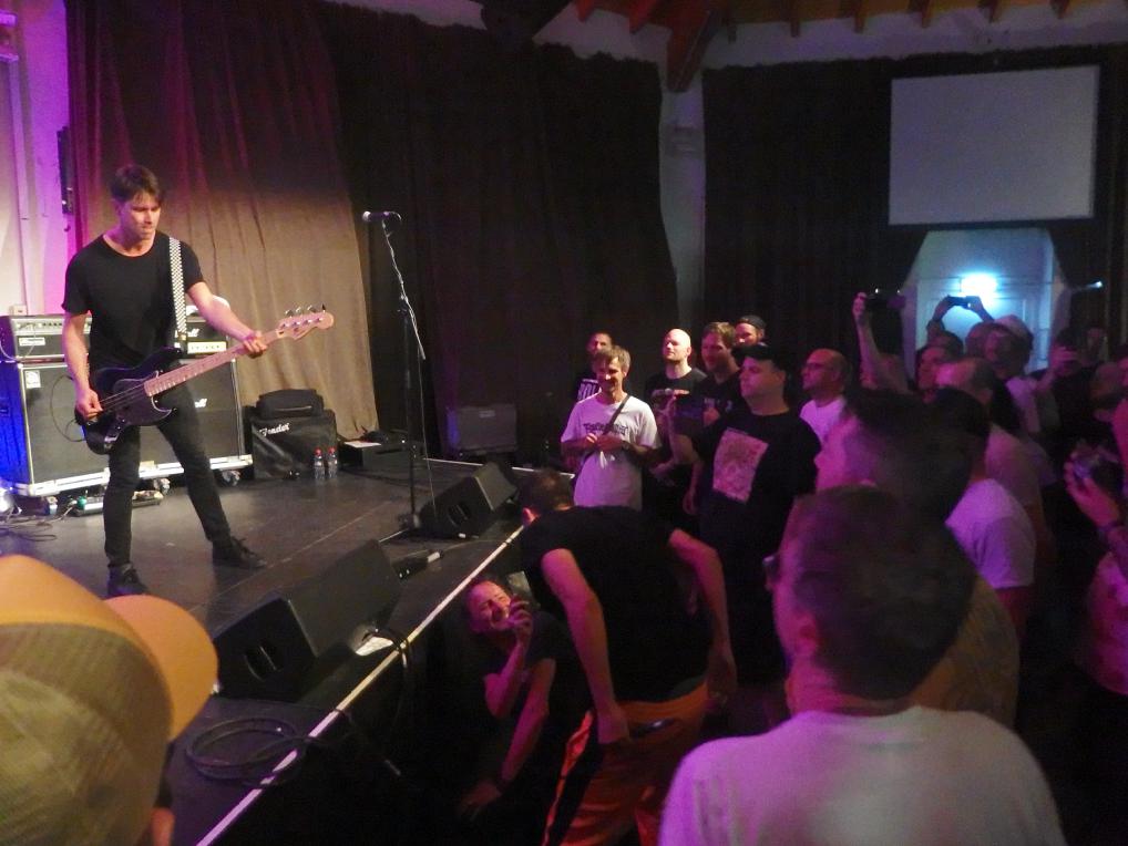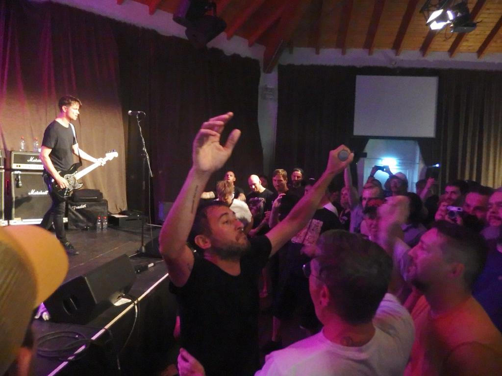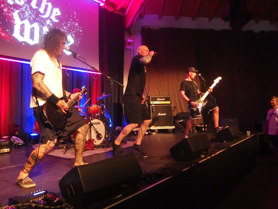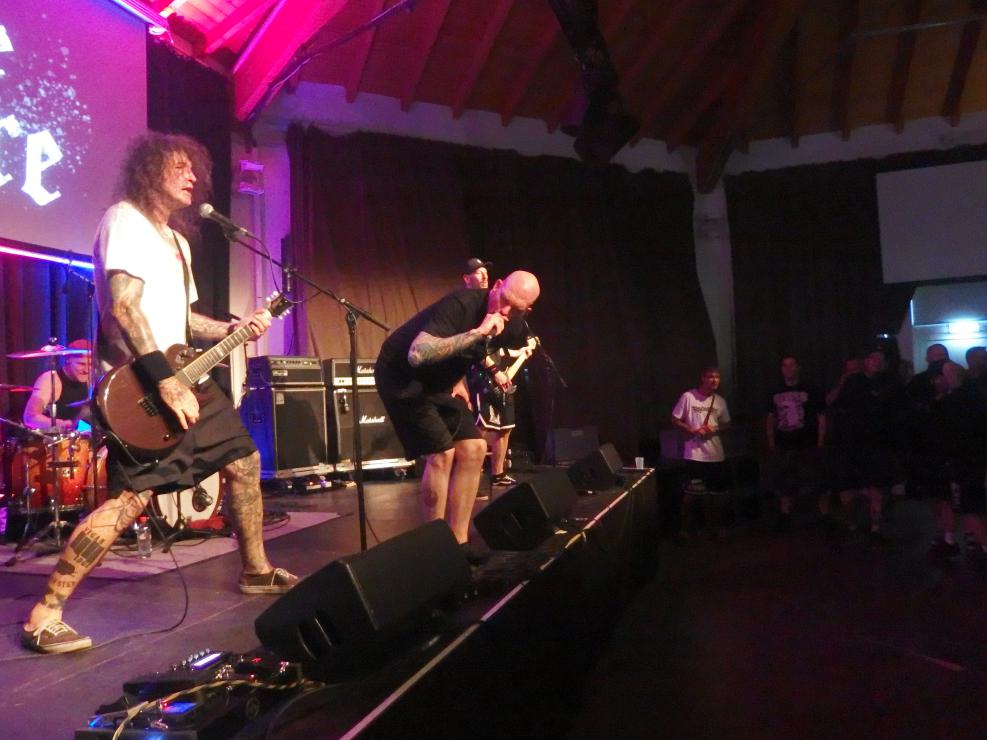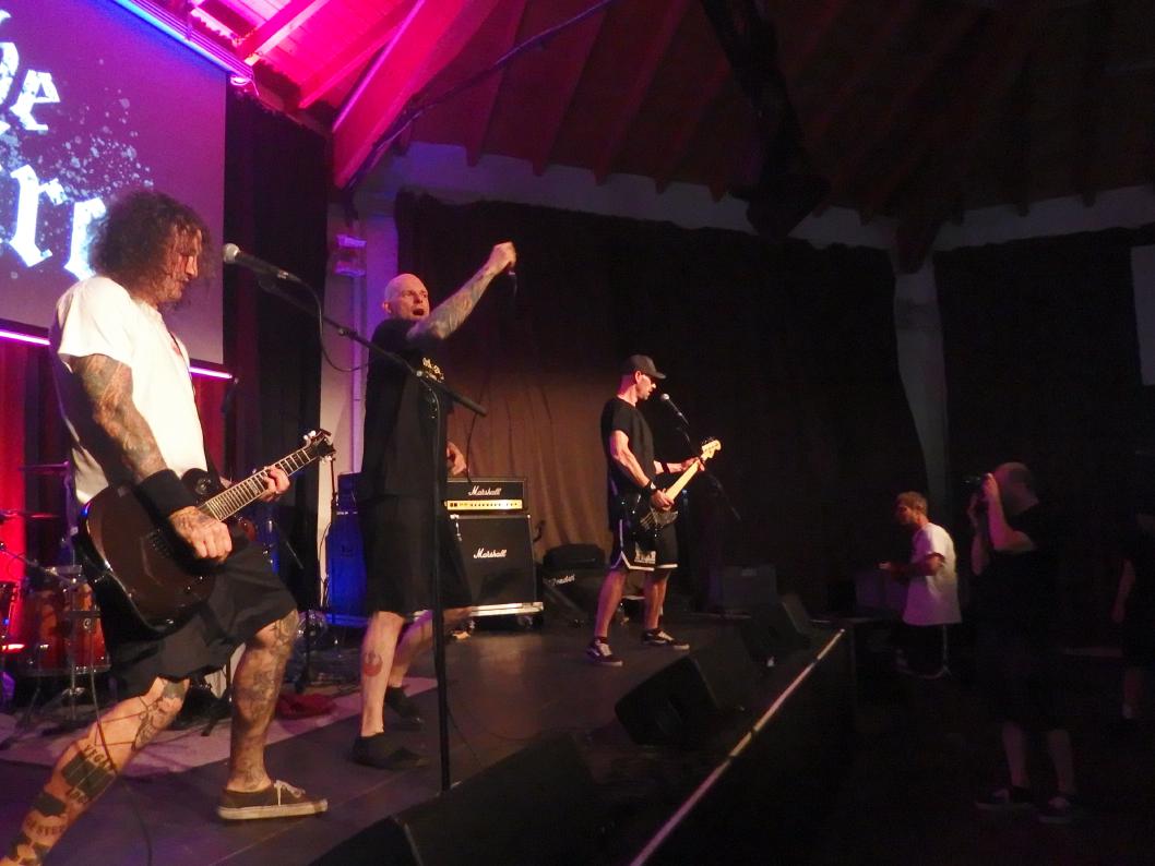 To the Wire waren dann doch eine kleine Überraschung für mich. So verblüfften doch letztens Tony Gorilla mit der Ankündigung einer Reunion, allerdings mit neuem Sänger. Deren alter Sänger Chris hat dafür als neues Projekt To the Wire ins Leben gerufen (wir berichteten). Zu den Klängen von Country Roads betrat die Band dann die Bühne und es gab keine Kompromisse mehr. Sehr schöner Old-School-Hardcore mit dezenter Metalkante. Mit Songtiteln kann ich euch leider nicht dienen, die Setlist verschwand während des Gigs, was für ein paar kleinere Schwierigkeiten sorgte. Aber iohre erste Single Desperate Times haben sie sicherlich gespielt. Ansonsten war die Band sichtlich bewegungsfreundlich und Chris besuchte auch zweimal das Publikum. Er war auch sichtlich angetan für Abhinanda veröffentlichen zu dürfen und trug ein T-Shirt der Band. Auch den Unity-Gedanken hob die Band hervor und erwähnte auch seine Freunde von Stay Free, von denen einige im Publikum waren. Klare Ansagen gegen AFD und Konsorten gabs auch.