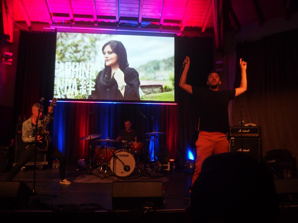 Sehr geil war die Videoleinwand, die antifaschistische Parolen und Bilder von Demonstrationen aus dem Iran zeigte. Letztere vor allem deshalb, weil José mit einer Iranerin zusammen ist. Ein paar der Standbilder könnt ihr in der galerie bewundern. Dort findet ihr auch die Setlist, die sicherlich keine Wünsche offen ließ. Insgesamt gabs 12 Songs, wobei sicherlich der Rausschmeißer No Spiritual Surrender im gedächtnis blieb, denn die Textzeile wurde ca. 200 mal wiederholt und am Schluss ließ sich José auf den Boden fallen. Auch bekannt sind sicherlich Emptiness sowie das Titelstück vom 1999er Album The Rumble, die beide auf zahlreichen Kompilationen zu finden sind. Sicher, die Band war nicht ganz eingespielt, aber immer noch schwer geil! Sehr schöner Gig!