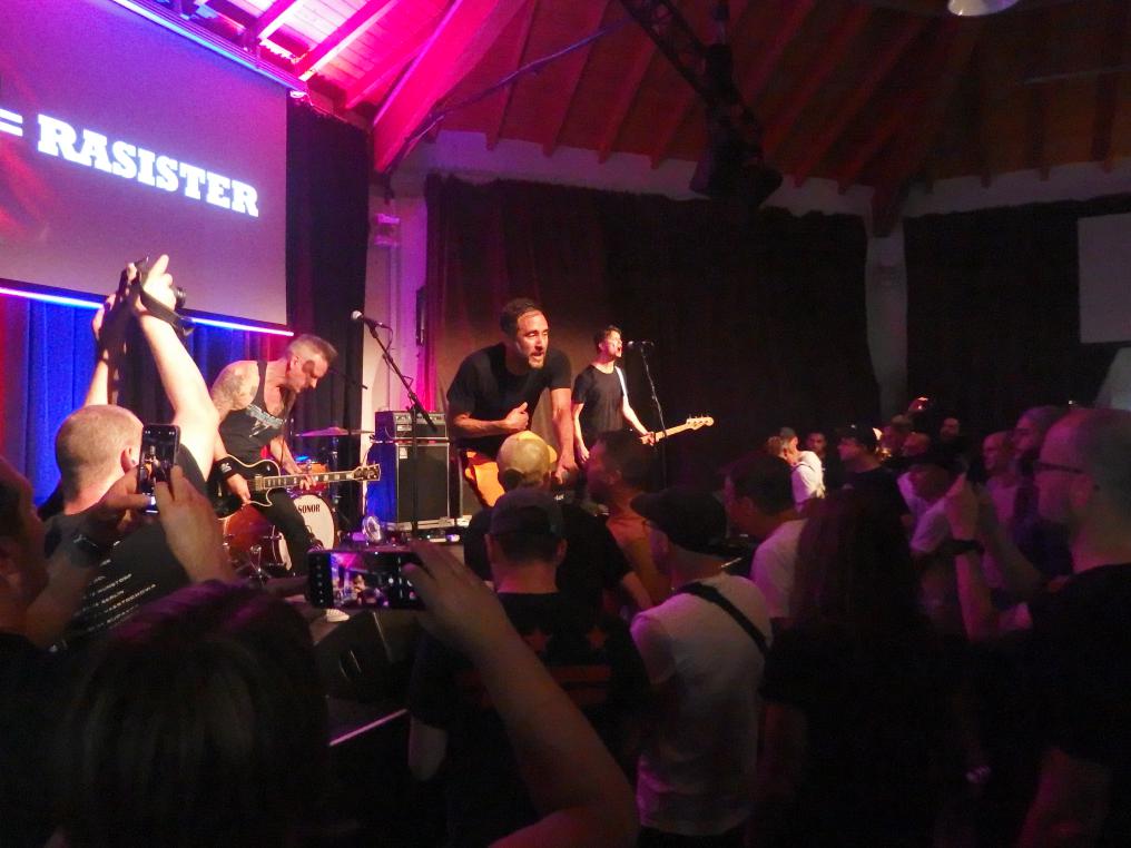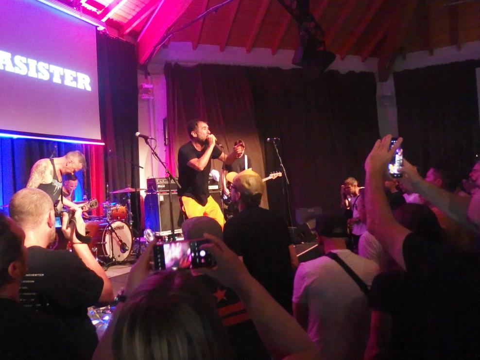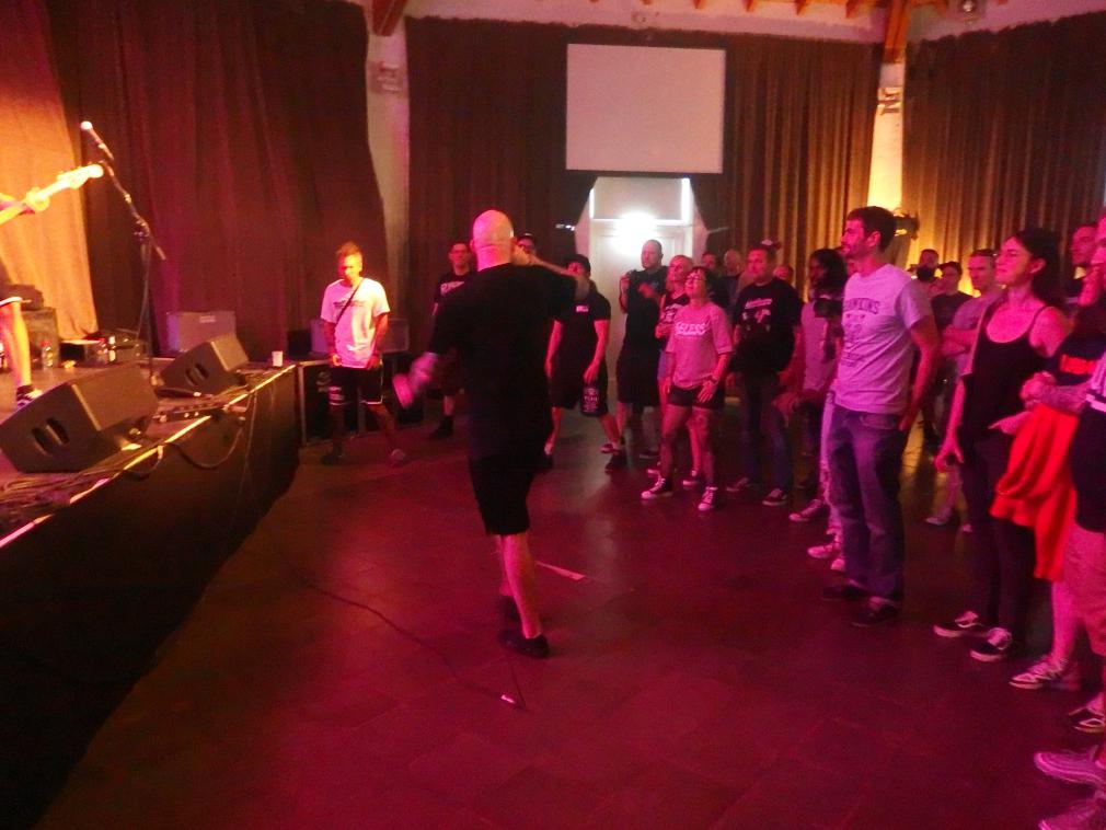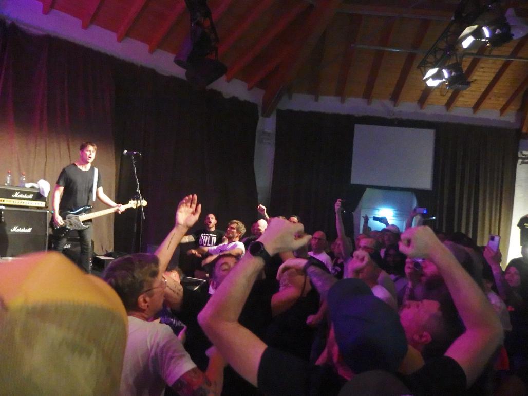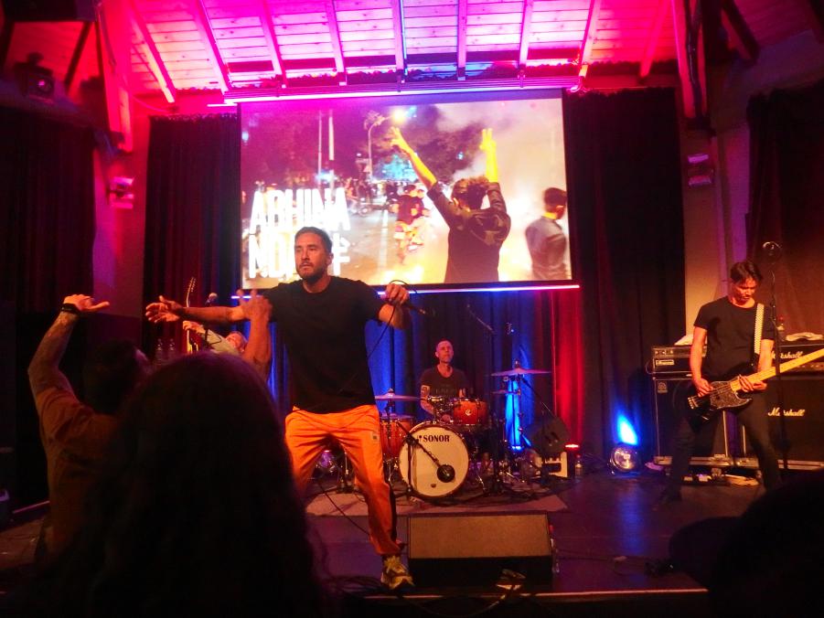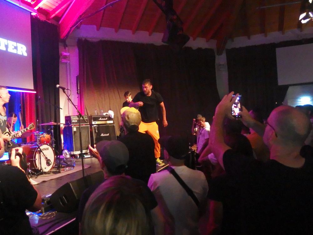 Abhinanda sind eine dieser schwedischen Bands, die man früher neben Refused auch gehört hat. Ende der 1990er machte die Gruppe ganz schön Lärm und tingelte durch die deutschen Clubs. Ich könnte schwören, ich hätte sie damals im AJZ Homburg gesehen, Zechi meinte aber, es müsste das P-Werk gewesen sein. Gut möglich, jedenfalls drei Songs im Set erinnerte ich mich wieder. Die Band war natürlich sichtlich älter geworden, aber die Agilität von Sänger José Saxlund nicht. Und an den konnte ich mich gut erinnern. Eine der politischen SXE-Bands ihrer Zeit war der Gig damals ein typisches Preaching-to-the-converted-event, wobei er heute zugab, damals kein gutes Englisch gesprochen zu haben und das Publikum habe aber noch weniger verstanden 😉 Das war heute nicht mehr so. Denn der Altersdurchschnitt bei diesem Tag in der altehrwürdigen Stummschen Reithalle war doch deutlich nach oben gerückt. Nur wenige junge Gesichter waren zu sehen. So erinnerte der Gig an ein Klassentreffen der Generation SXE der 1990er. Nur SXE waren nicht mehr so viele… Egal, Abhinanda spielten jedenfalls laut Veranstalter eine exklusive Germany Clubshow, was schon ziemlich geil ist für den Kulturstandort Neunkirchen. Diesen Sommer waren es dann doch einige Gigs, die überraschten. Dementsprechend gut gefüllt war auch die Halle.