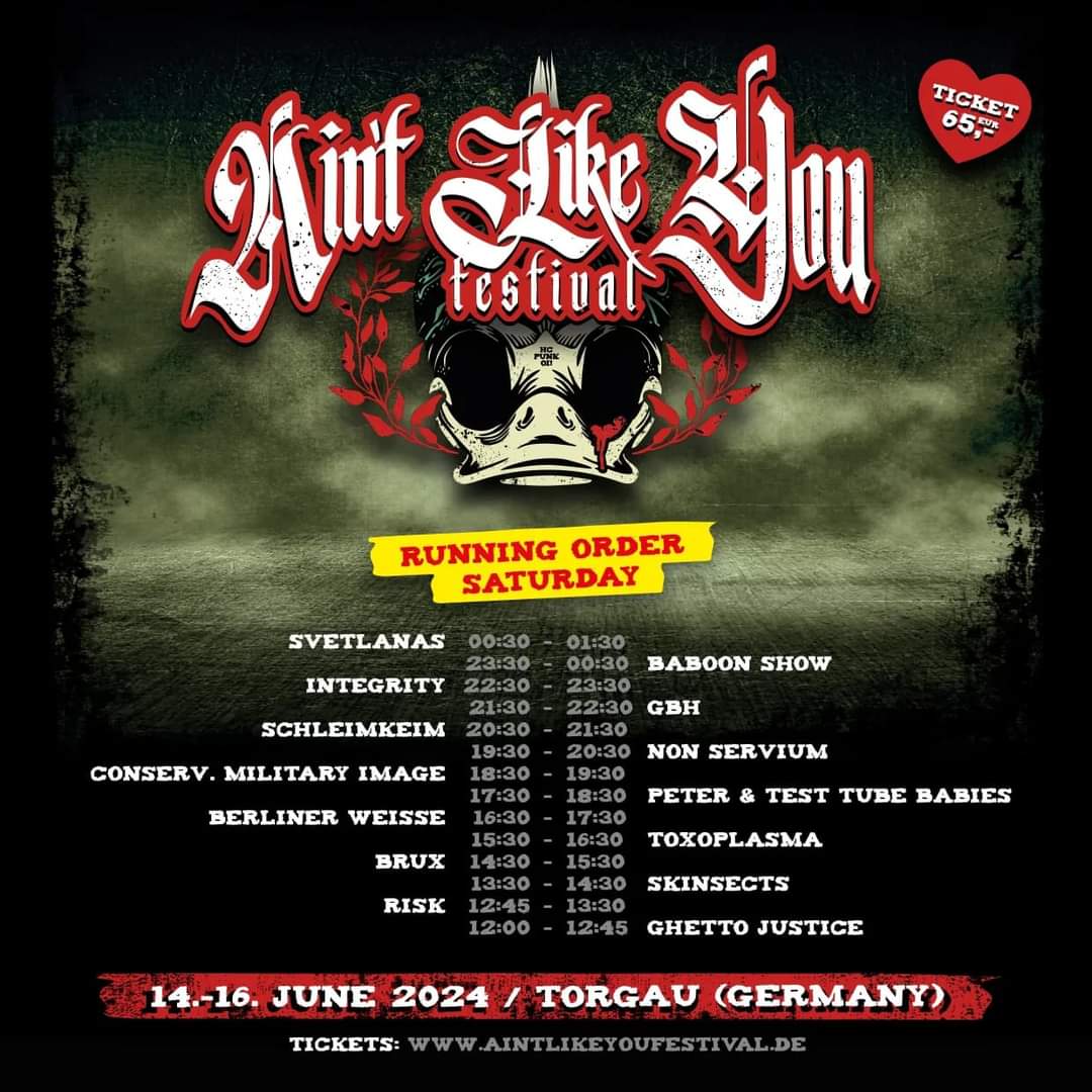 Und auch vom Line-Up tritt das Ain’t Like You in die Fußstapfen des Endless Summers. So dürfen wir uns auf ein bunten Mix aus Hardcore, Oi! und Punk-Rock freuen. Mit dabei unter anderem Agnostic Front, Bane, Comeback Kid, The Casualties, GBH, Lions Law, The Baboon Show und Conservative Military Image, um nur ein einige zu nennen.
