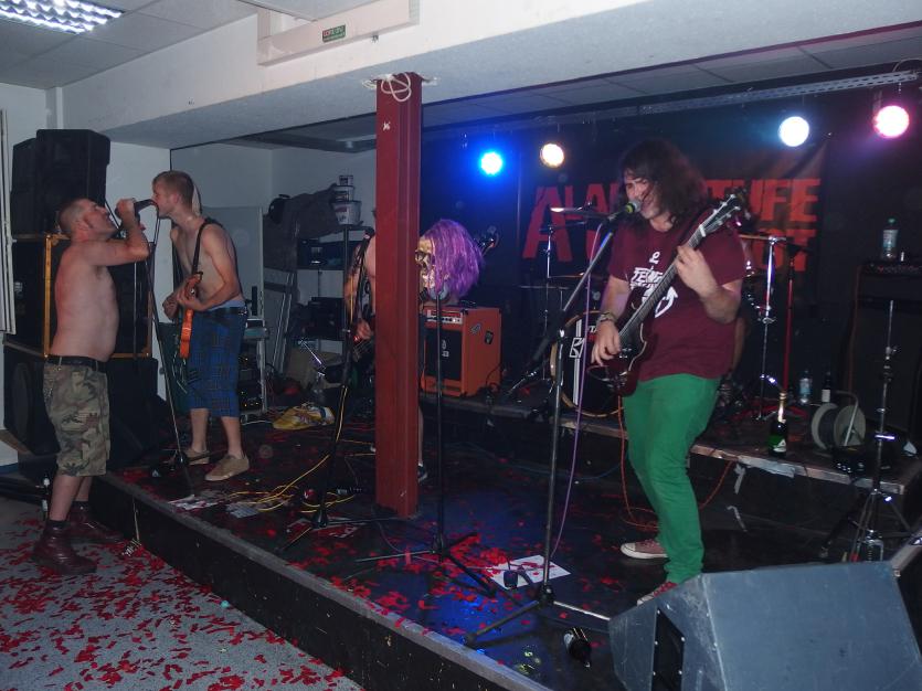 Alarmstufe Rot existieren seit 2009. In ihrer bisher 8jährigen Bandgeschichte mauserten sie sich zu einem Geheimtipp in der saarländischen Szene. Nun ist ihr Debütalbum sozusagen …zu spät erschienen (Review siehe hier). Das muss natürlich gefeiert werden. Und welcher Ort bietet sich dazu besser an, als das JUZ Neunkirchen, wo die Bnad bereits vorher mehrere Auftritte bestritten hatte.