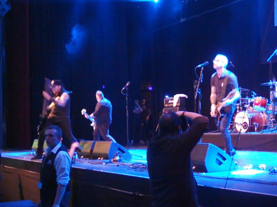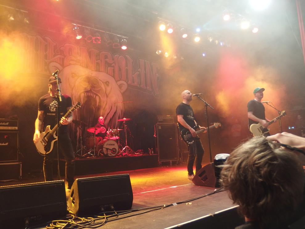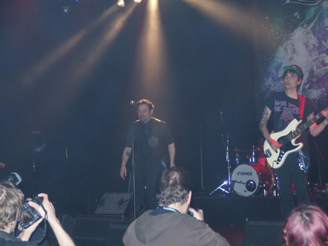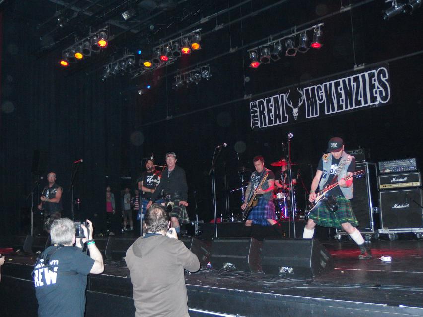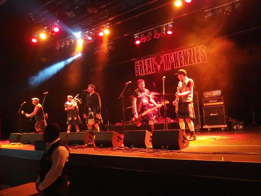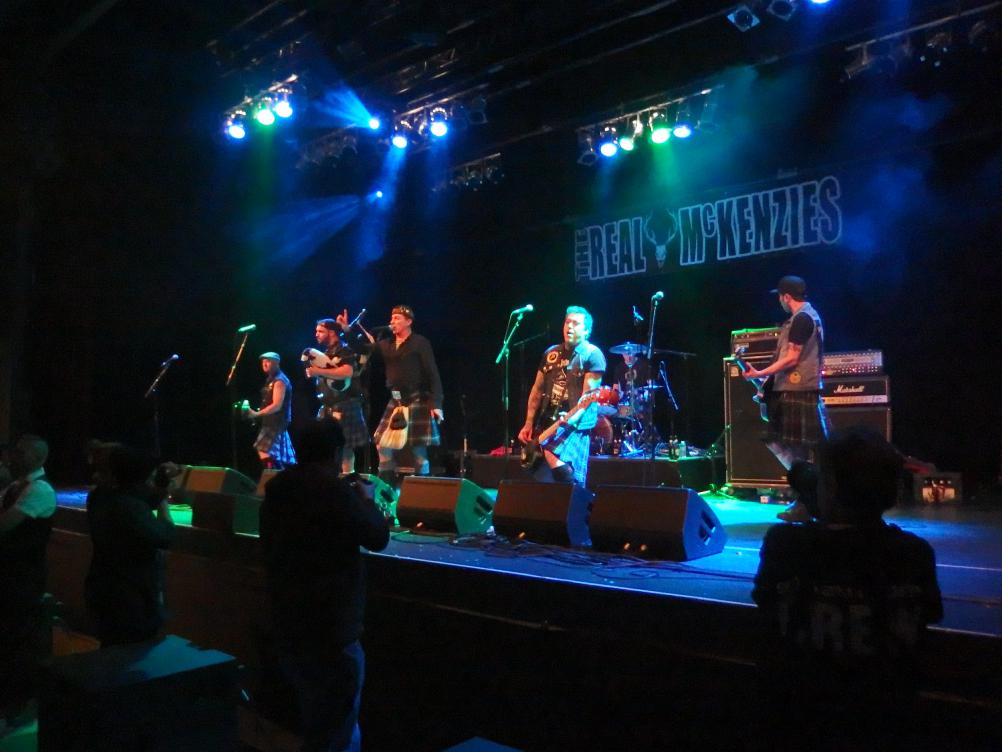 Weiter gings mit Real McKenzies aus Schott.., äh Kanada. Die hatte ich immer so als Dropkick Murphys für Arme in Erinnerung, allerdings existieren sie ganze vier Jahre länger als ihre vermeintlichen Vorläufer. So kann man sich irren. Damit sind sie Vorreiter eines Celtic-Punk-Stils, den vor ihnen lediglich die Mahones und die Pogues angehörten. Dropkick Murphys und Flogging Molly kamen erst später. Gibt sogar ein Lied drüber: Fuck the Real mcKenzies Also, Punk mit irischen Einflüssen, viel Dudelsäcke, ein paar Original Tunes, aber vor allem tanzbarer Punkrock, der allen Anwesenden (und das waren leider mehr als bei Love A) sichtlich Spaß machte. Vorne wurde getanzt, gesungen und gelacht und ich glaube auch hinten geschah das Gleiche. Trotz ihres Alters (mit dem sie von Zeit zu Zeit kokettierten) zeigte die Band eine unfassbar gute Show und natürlich lüftete Paul McKenzie auch seinen Schottenrock, um seinen Dödel dem Publikum zu präsentieren. Natürlich erst als alle Fotografen aus dem Pit abgezogen waren. Hits gabs auch, das wunderschöne Droppin‘ Like Flies und Drink Some More, nur um mal die bekanntesten zu nennen. Sicherlich ein Highlight des Line-ups.