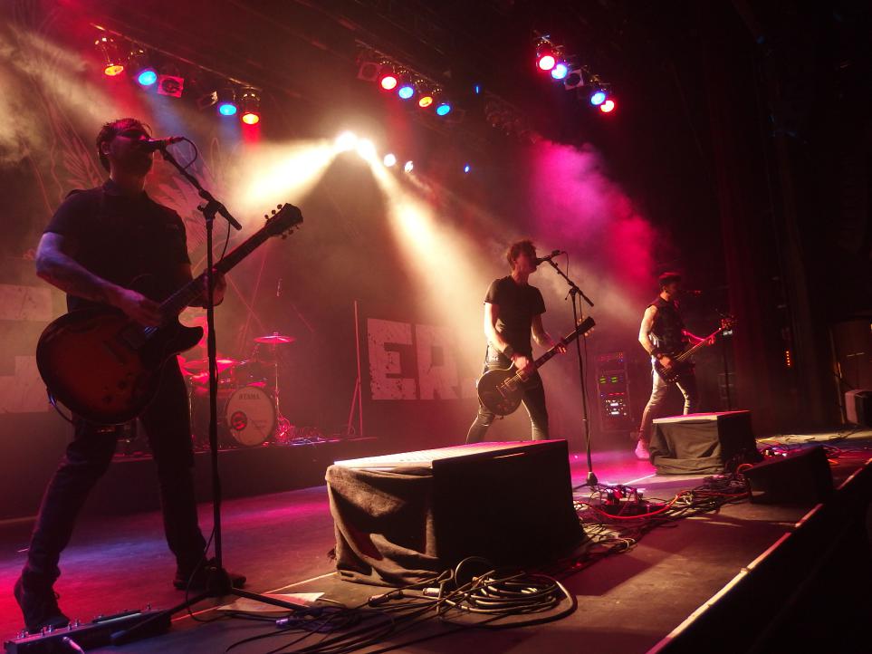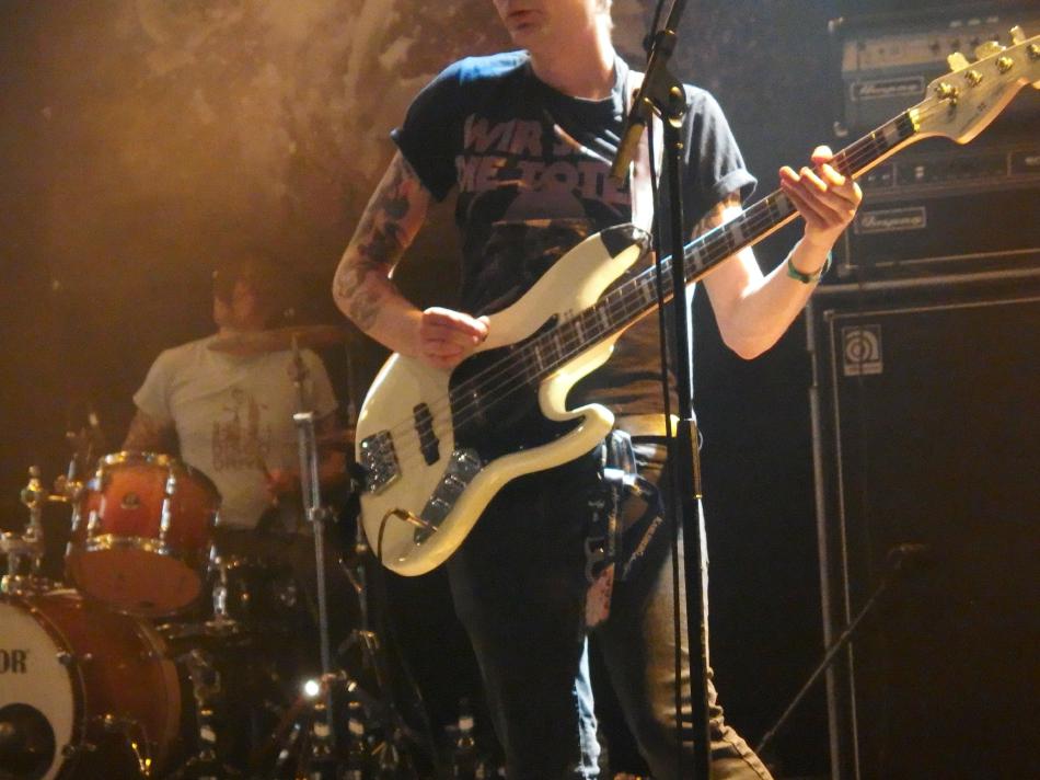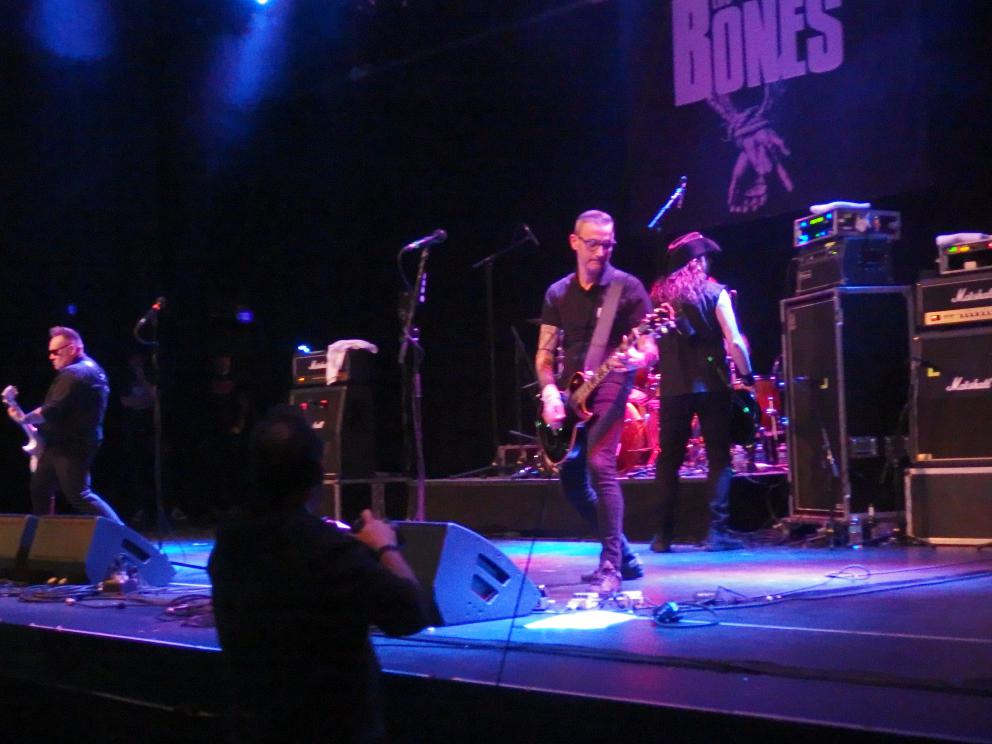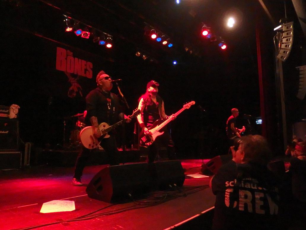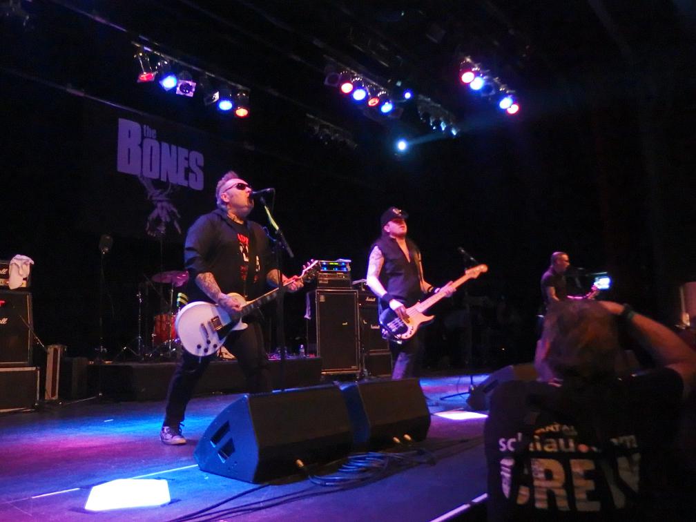 Weiter gings dann mit The Bones. Ein letzter Beweis dafür, dass hier wirklich alle zufrieden waren. Denn waren bei Fahnenflucht die Punker vorne, bei Love A die anspruchsvollen Punk-Hipster wie ich (hüstel), bei The Real McKenzies die Mittelalter-Celtic-Punker so war bei den Bones die erste Reihe T-Shirt-los. Für die nächste Stunde regierte der Punk ’n’ Roll aus Schweden und ließ in den ersten Reihen keine Kleider trocken. Die Security hatte alle Hände voll zu tun, die Stagediver zu beschäftigen, wie später bei Millencolin auch. Der Pogo war ruppiger als das vorherige Ringelrein bei den McKenzies. Die Band machte ihre Sache richtig gut, insbesondere die Marcus „Boner“ Petersson (Gitarre, Gesang) und Andi Nero (Bass) zeigten wie man sich auf der Bühne angemessen verhält. Gitarre hinterm Kopf spielen und vor allem geil posen. Gut gefiel mir der Wechselgesang und dass die Band zwar ohne Hauptsänger auskommt, jeder Sänger aber seinen eigenen Stil miteinbringt. Toller Auftritt!