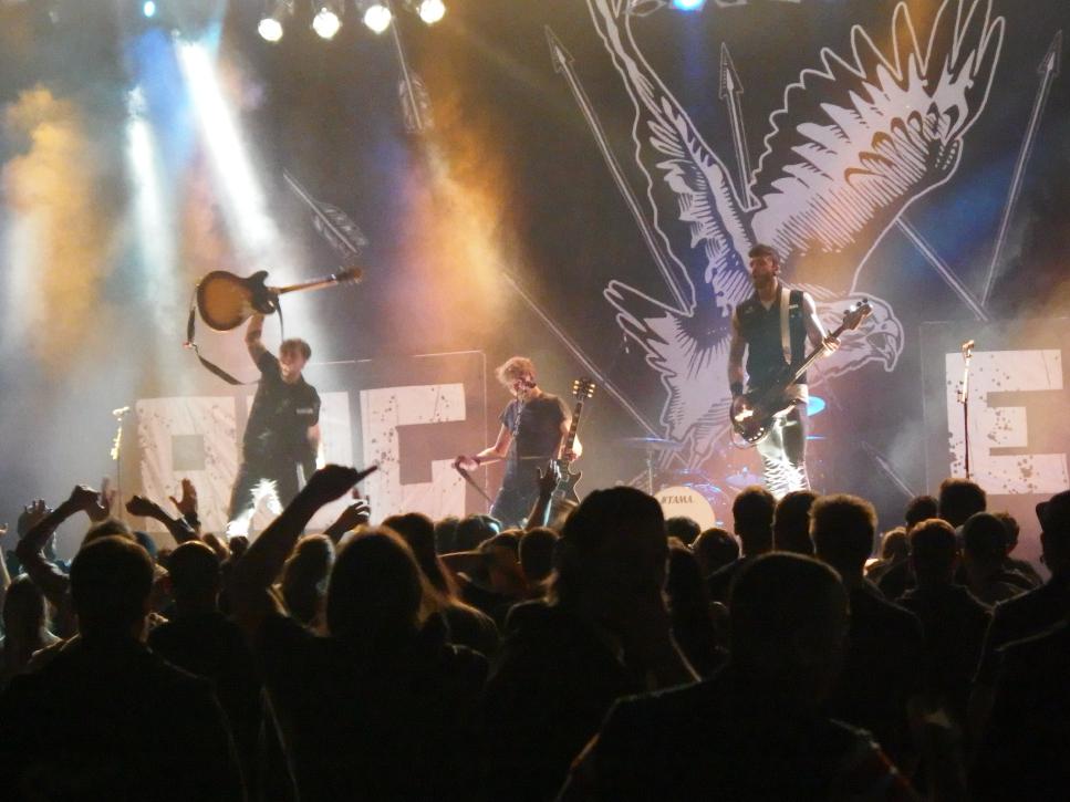 Also, noch jemand da? Hab geflunkert, wird eigentlich ganz sanft. Naja fast… Ok, also ich hab nie so ganz verstanden, warum die gut sein sollen. Für mich ist das belangloser Deutschrock im Broilersgewand, allerdings nur halb so gut. Btw, das neue Broilersalbum ist ein ziemlicher Hammer fand ich. Was man ihnen allerdings nicht vorwerfen kann, ist fehlender Enthusiasmus. Die dritte Band mit einem Engagement am selben Tag. Vorher hatten sie schon Oberhausen unsicher gemacht und sind mal flugs danach rübergedüst. Tourauftakt für die Band aus Düsseldorf. Es waren schätzungsweise noch 1/3 der Menschen von Millencolin da, um sich die Band anzutun. Davon ließen sie sich nicht beeindrucken und lieferten sich letztlich einen soliden Gig ab. Sie konnten auch noch für ein bisschen Stimmung beim Publikum sorgen und sie waren tatsächlich die einzige Band, bei denen ein Mitglied, nämlich der Sänger, ein Bad in der Menge nahm. das verdient natürlich Respekt. Ob die fans in Oberhausen aber glücklich darüber sind, dass die Band sagte, ihr hätte es hier, trotz weniger Publikum besser gefallen? Tja, doof, dass hier ein Petzer mitschreibt, ne? Jedenfalls und damit komme ich hoffentlich zu einem versöhnlichen Ende, die Rogers waren mit Sicherheit ein gelungener Rauswerfer für ein wirklich tolles, gelungenes und atemberaubendes Festival. Gegen 2:00 Uhr war ich dann zu Hause, 10 1/2 Stunden ohne Sitzpause. Das ist länger als so mancher Arbeitstag. Und dann noch das ganze Bier und das leckere Essen… Und der ganze Krach, die vielen Menschen. Ach das Leben als Journalist ist hart…