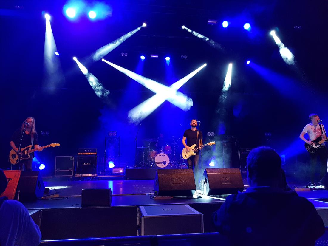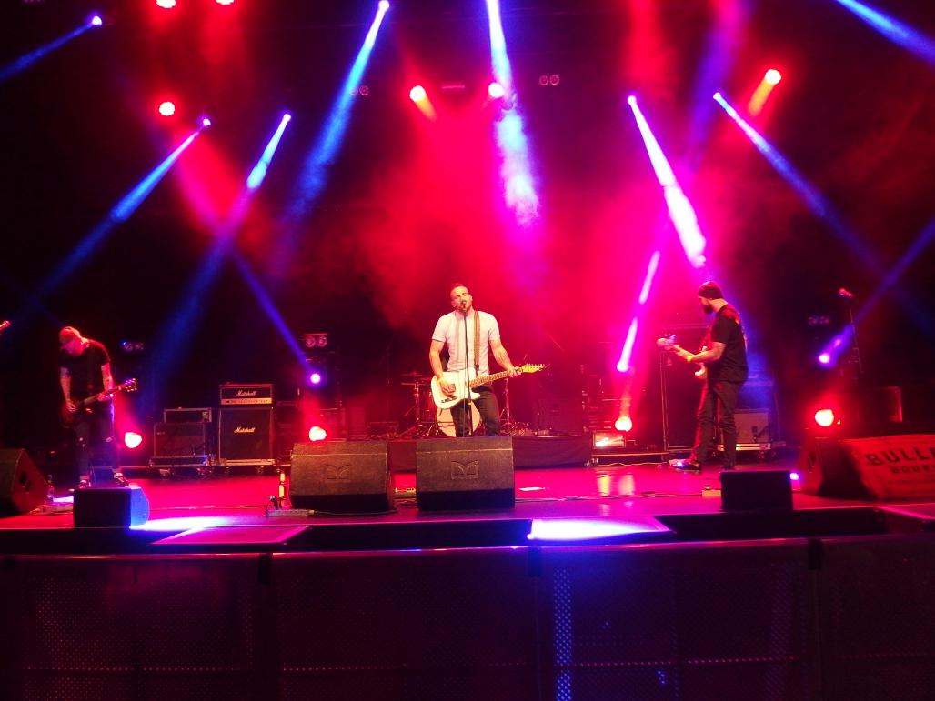 Zwischen Pkewx3 und der nächsten Band inspizierte ich mal die Essensstände, während der Rest der Reisegruppe im nahe gelegenen Saarpark-Center (für Nicht-Saarländer: quasi DIE Einkaufsmeile) ihr Glück versuchte. Es gab die Auswahl zwischen Vegan und Fleisch, also für mich nur die Auswahl am veganen Stand von World Food Trip. Die war ganz formidabel, und so wurde es dann der vegane Cheeseburger. Apropos Stände, Viva con agua konnten 200 Becher sammeln. Ansonsten war auch die Tabakindustrie vertreten. Durch Abwesenheit glänzte diesmal Kein Bock auf Nazis. Schade eigentlich.