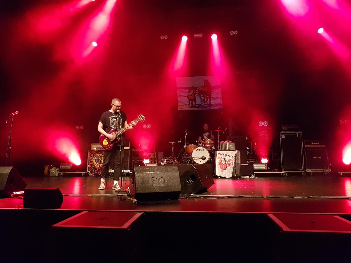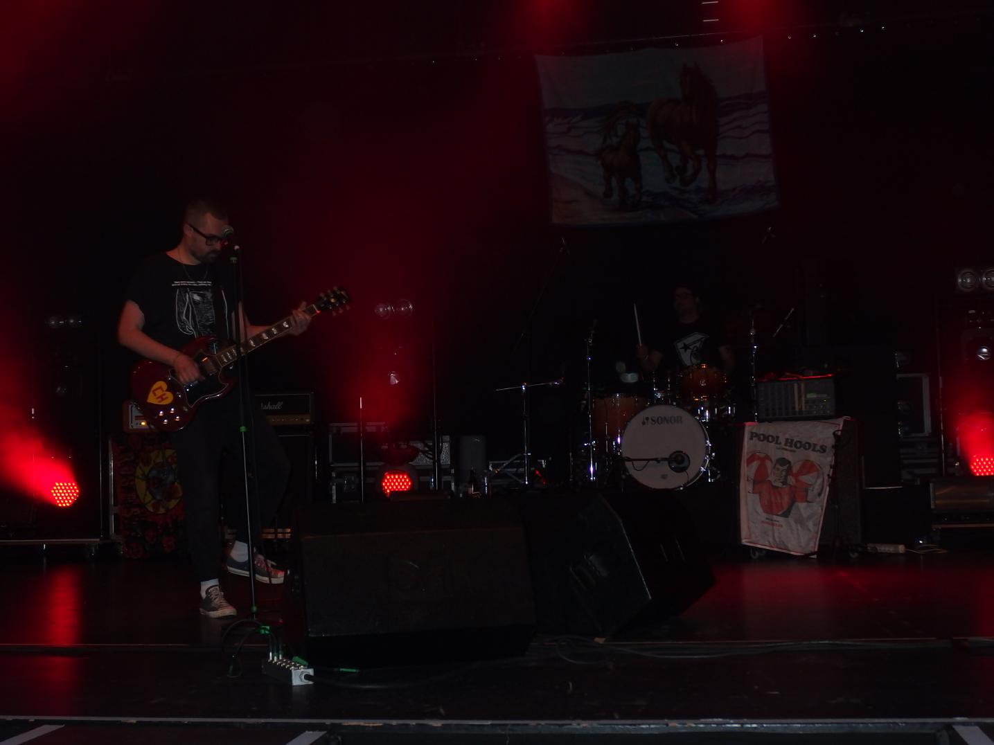 Los gings mit Pool Rules, die ich tatsächlich in der gleichen Woche schon einmal gesehen habe (siehe hier). Im Vergleich zu ihrem vorherigen Set gab es (für mich) keine Überraschungen. Der Sound war etwas weniger druckvoll als im Schalander. Setlist und Ansagen waren fast identisch. Ein toller Opener, der leider etwas darunter litt, das noch nicht allzuviele Leute anwesend waren. Hervorzuheben ist das nette Backdrop mit dem Malen-nach-Zahlen-Pferdemotiv.