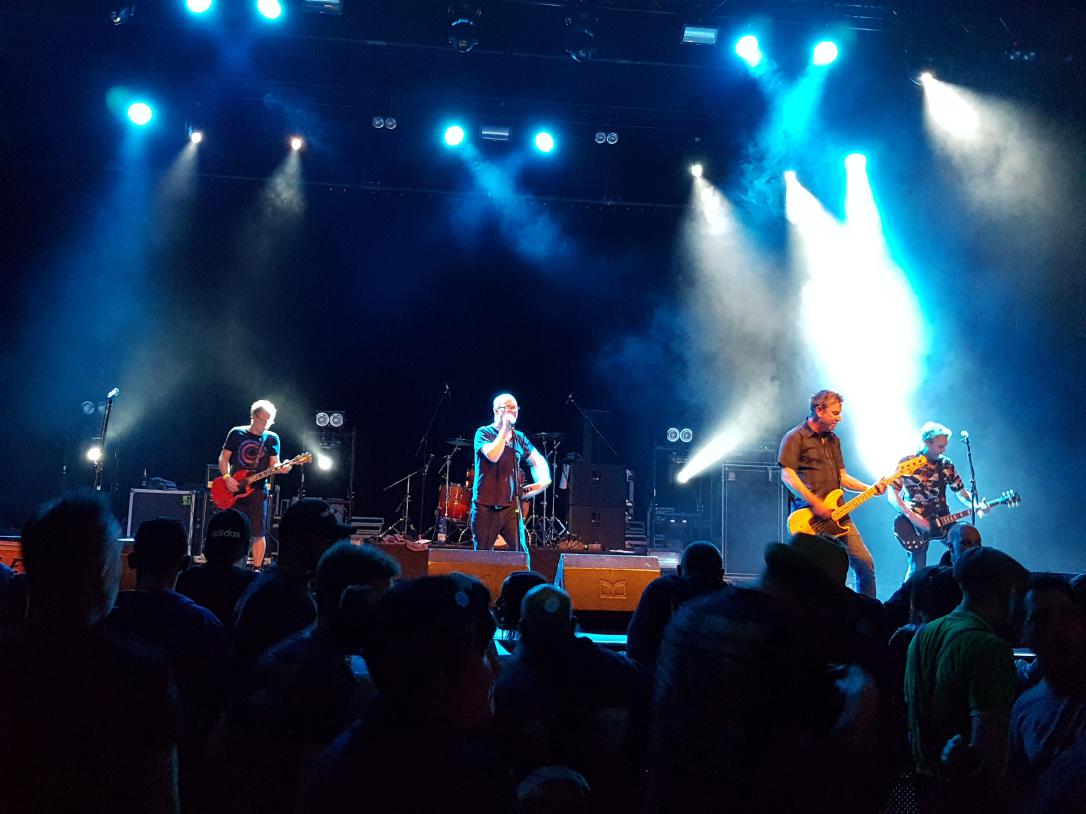 Spermbirds waren sicherlich nicht nur für mich das Highlight des Festivals. Hätten geren auch etwas später spielen können. Zum ersten Mal gabs jetzt auch Pogo in der Meute und die ersten Crowdsurfer machten sich auch bereit. Und was für eine Setlist. Los gings mit Americans are cool und dann folgte Hit auf Hit. Lee Hollis war offensichtlich gut gelaunt und befeuerte die Meute. Auch zwei neues Song hatte die Band im Gepäck, die von den Fans ebenfalls abgefeiert wurden. Und dann endete das Set mit Only a Phase, meinem absoluten Lieblingslied. Aber: kein My God Rides a Skateboard. What? Nach frenetischen Zugaberufen kam die Band tatsächlich (und ich glaube als einzige) zurück … und spielte Lights Out von den Angry Samoans. What??? Und tatsächlich, die Band kam auch ein zweites Mal zurück und spielte dann endlich den lang erwarteten Hit. Die Meute explodierte förmlich. Wäre nicht die Pascow-Releaseshow wäre das der beste Auftritt dieses Jahres gewesen.