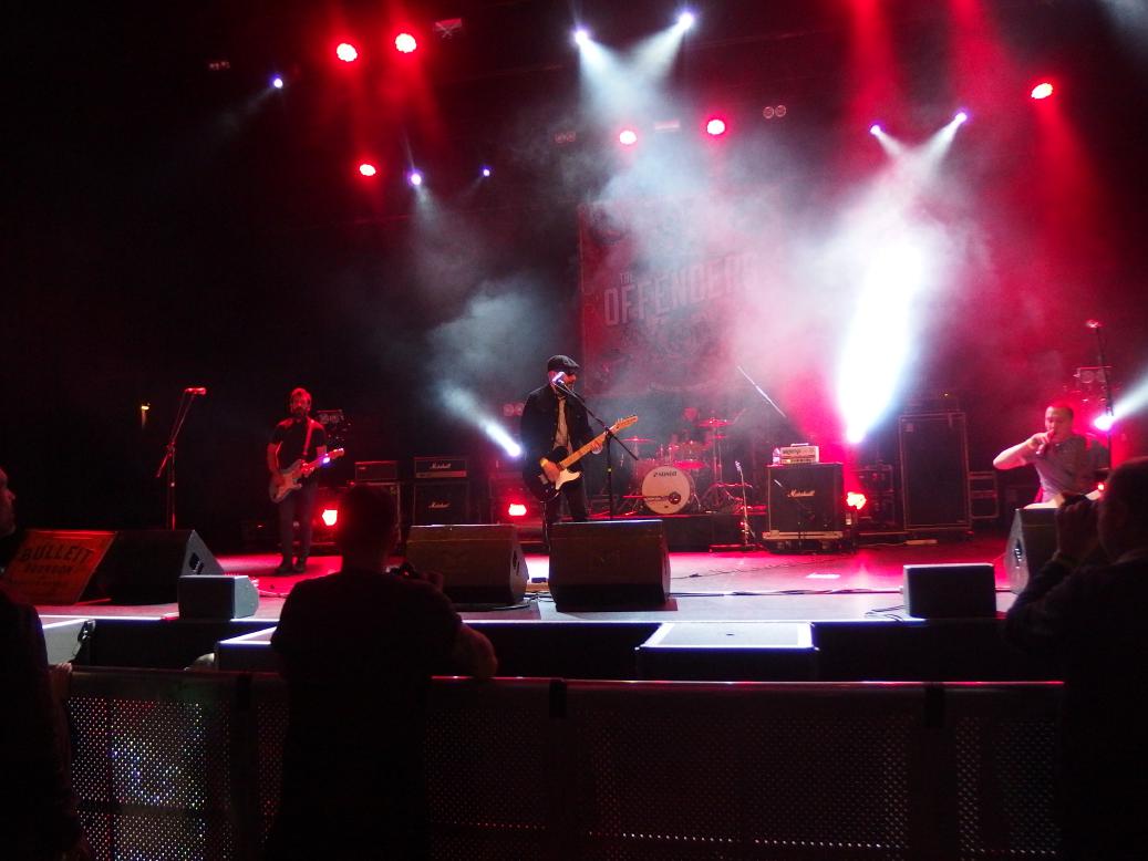 Als nächstes The Offenders. Für mich die Überraschung des Festivals. Hooligan Reggae beziehungsweise 2tone-PunkRock nennen sie ihren Stil, dementsprechend irgendwo zwischen Ska, Streetpunk und Oi! Ging alles sehr in The-Clash-Richtung, von denen sie auch als letzten Song White Riot coverten. Klare Ansagen gegen Nazis sind bei der Band Pflicht. Die Band stammt ursprünglich aus Italien, wohnt aber derzeit in Berlin. Sachen gibts! Deswegen gabs auch ein paar „deutsche“ Lieder (naja, im Refrain). Definitiv eine meiner neuen Lieblingsbands. Mehr davon!