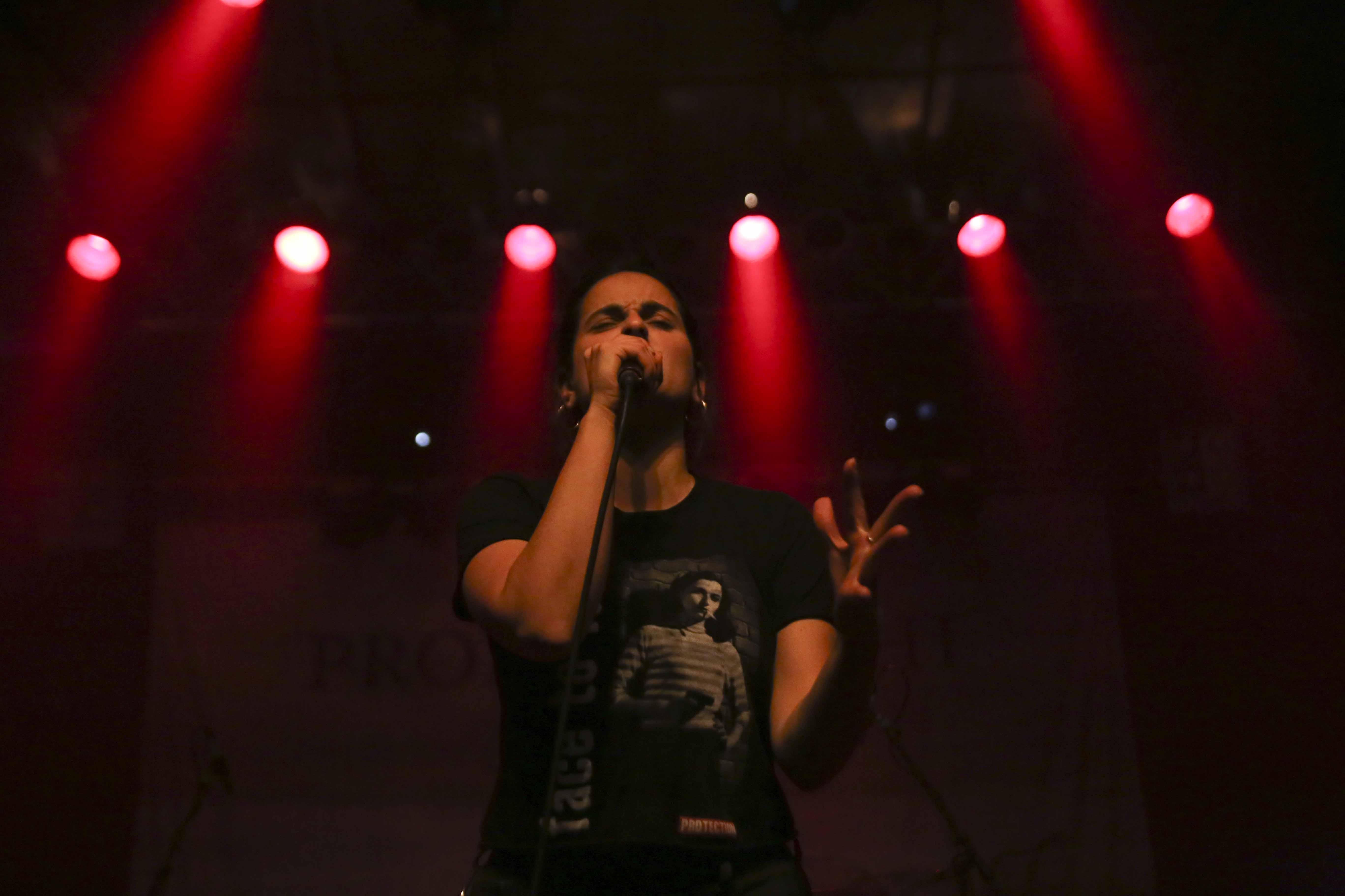 Not On Tour heißt die israelische Band, die sich als nächstes um das Publikum der saarbrücker Garage kümmert. Frontfrau Sirma springt wild über die Bühne während sie zu den schnellen, überwiegend recht kurzen Songs der Band ins Mikro singt und schreit. „Mal was anderes“, denkt man sich schnell. Gemeint ist hier aber etwas wirklich besonderes, denn ein Vergleich mit einer anderen Band würde mir äußerst schwer fallen.