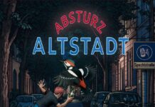 Dafür kommt die Vinyl ziemlich fett mit hübschem Text-Einleger inklusive nackten Tatsachen in bester Beach-Boys-Manier am Strand mit Surfbrett. Nice… nicht unbedingt die durchtrainiertesten Körper. Das mag vielleicht auch an der Neigung zum Alkoholkonsum liegen, der ab und an in den Texten durchschimmert (das heißt: in so ziemlich allen). Wie heißt eine der kongenialen Zeilen: „Ich bleibe hier! Ich trink für vier. Bleibst du bei mir?“ Ich denke schon.