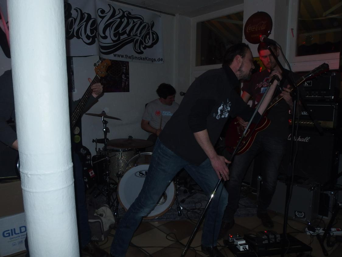 Erste Band waren die Smoke Kings und die spielen Rockabilly. Musikalisch ganz nett, aber es wäre mir wohler, Songs wie Pussyparty würden von einer Party im Tierheim handeln… Naja, in der Szene spielt man ja gerne mit Klischees und diese wurden an diesem Abend doch ziemlich bedient. Demnächst soll ihr neues Album erscheinen, dafür gab die Band dann ein laminiertes Plakat raus. Habe ich auch noch nicht erlebt. Wie gesagt, musikalisch ganz ok, aber da habe ich auch schon besseres gesehen (ok, ist auch unfair, ich hatte nämlich Reverend Horton Heat gesehen, darüber gibts glaub ich nur noch Brian Setzer). Egal, also Album soll demnächst kommen…