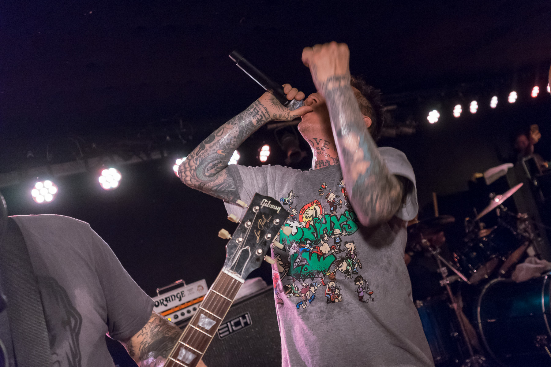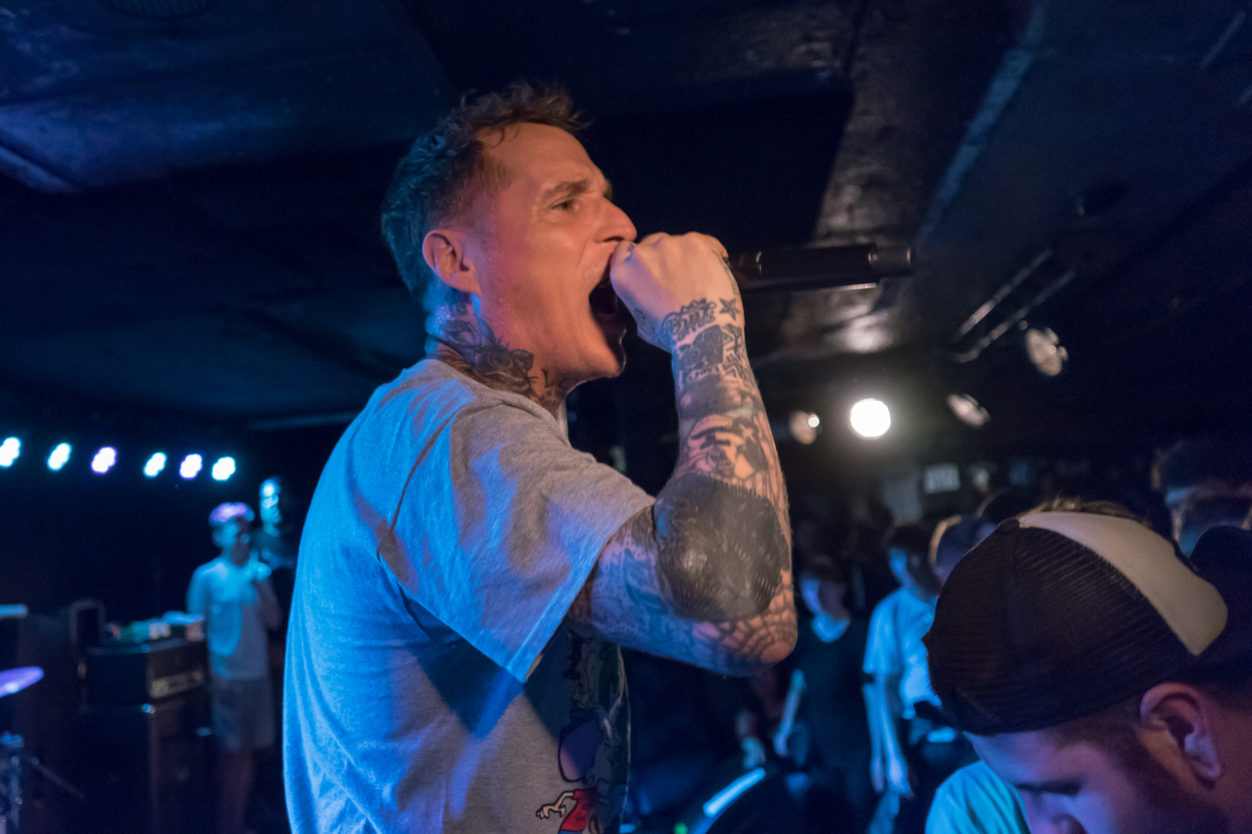 Nach einer kurzen Umbaupause füllt sich das Logo zusehends. H2O betreten die Bühne und sofort ist eine unglaubliche Energie zu spüren. Es dauert auch nicht lange, bis die ersten Körper von der Bühne an mir vorbeifliegen. Toby Morse und der Rest der Band haben heute richtig Bock, das merkt man ihnen richtig an. Das Hamburger Publikum dankt es Ihnen entsprechend und feiert gemeinsam mit H2O ein schönes Fest.