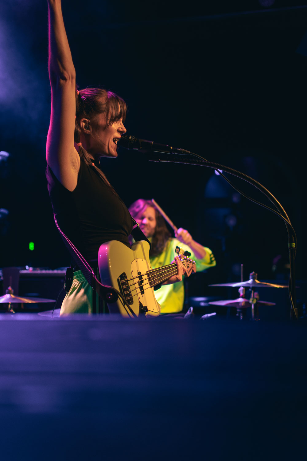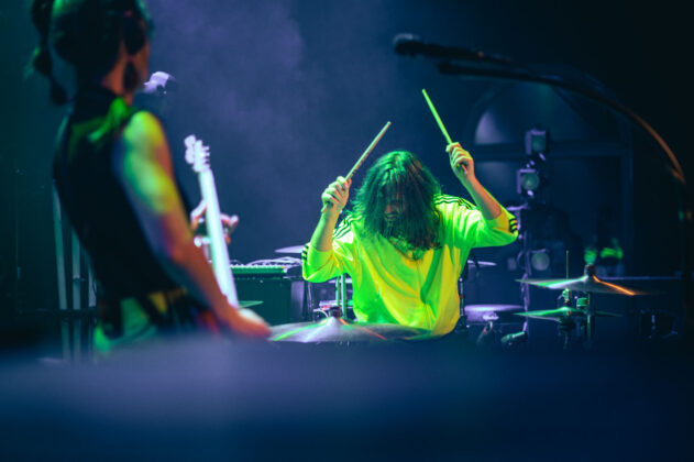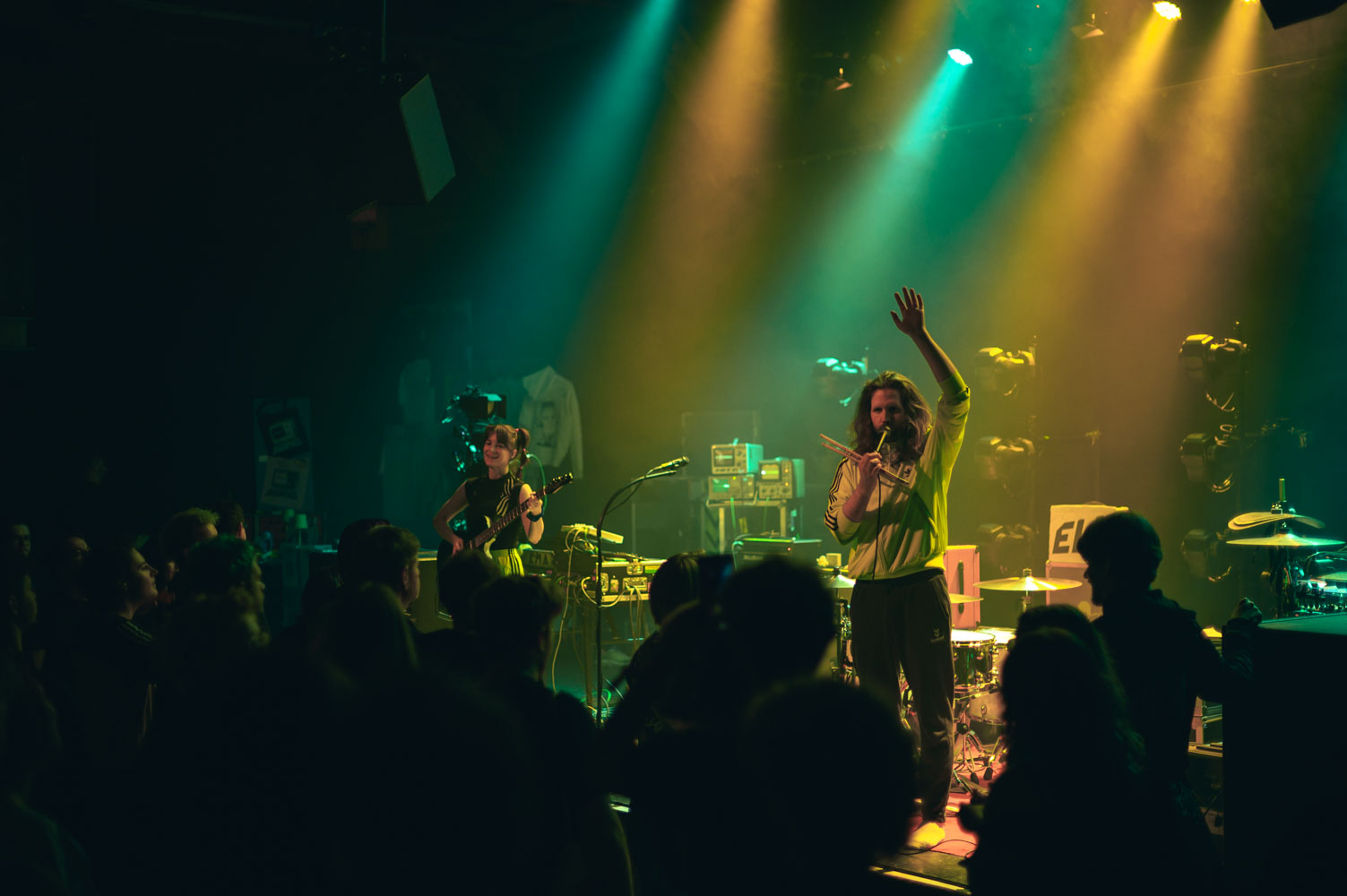 Kochkraft durch KMA sind sicherlich nicht für einen gemütlichen Abend bekannt. Ihre Show gleicht eher einem Event im Bereich des Hochleistungssport. Dass man sich hierfür ordentlich aufwärmen muss, wissen alle, die die vier Musiker:innen schon mal live gesehen haben. Die richtige Musik für das Aufwärmprogramm haben ELL geliefert. Das Krachpop-Duo, bestehend aus Lisa-Anna am Bass und Lennart am Schlagzeug, haben neben tanzbaren Melodien auch politische Ansagen im Repertoire. Auch hier durfte der erhobene Mittelfinger nicht fehlen – sehr schön! ELL begleiten ab November dann Van Holzen auf ihrer Tour – sollte man sich nicht entgehen lassen.
