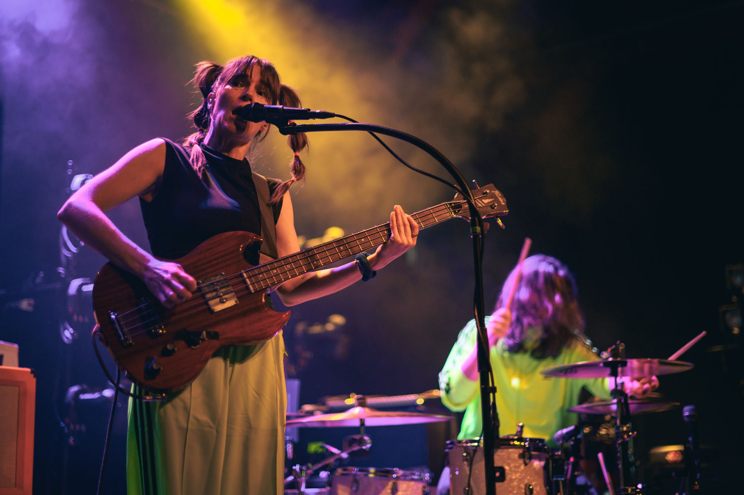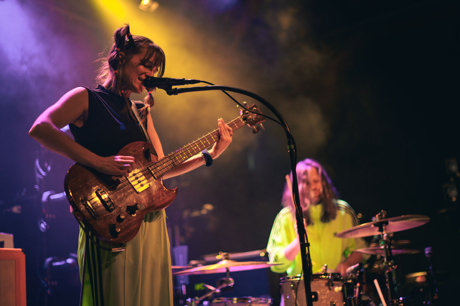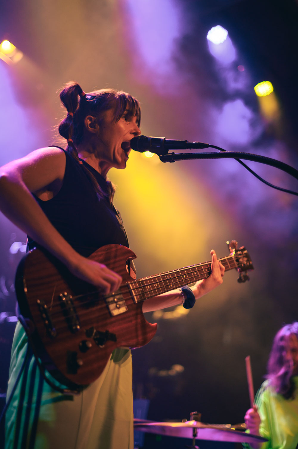 Kochkraft durch KMA sind sicherlich nicht für einen gemütlichen Abend bekannt. Ihre Show gleicht eher einem Event im Bereich des Hochleistungssport. Dass man sich hierfür ordentlich aufwärmen muss, wissen alle, die die vier Musiker:innen schon mal live gesehen haben. Die richtige Musik für das Aufwärmprogramm haben ELL geliefert. Das Krachpop-Duo, bestehend aus Lisa-Anna am Bass und Lennart am Schlagzeug, haben neben tanzbaren Melodien auch politische Ansagen im Repertoire. Auch hier durfte der erhobene Mittelfinger nicht fehlen – sehr schön! ELL begleiten ab November dann Van Holzen auf ihrer Tour – sollte man sich nicht entgehen lassen.