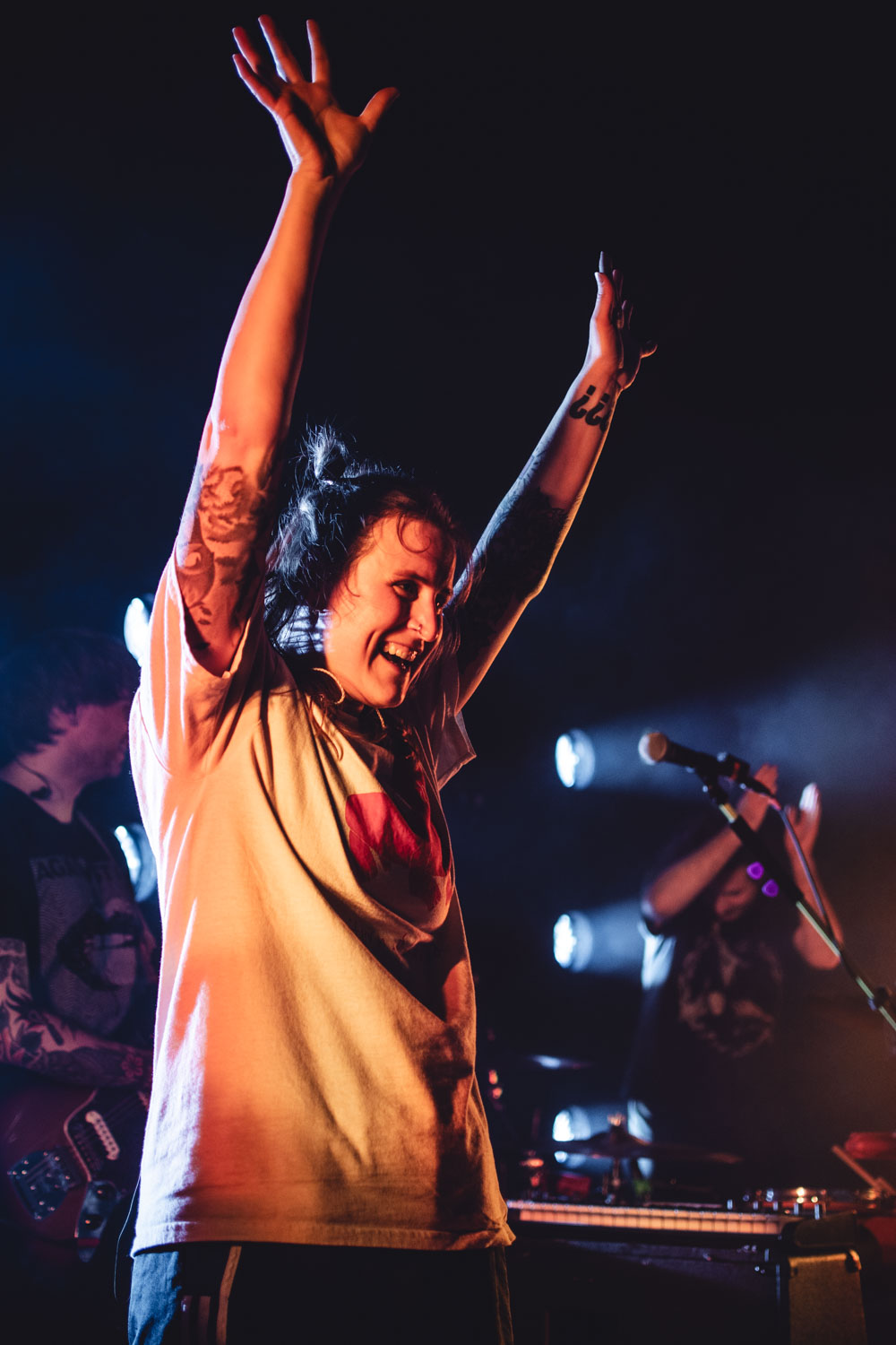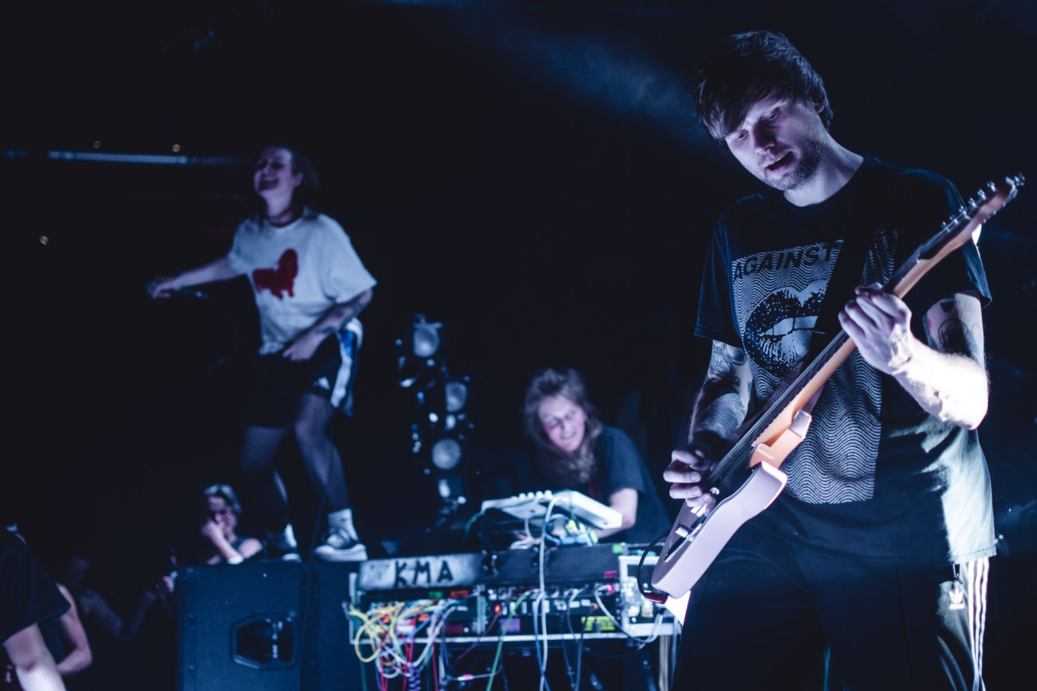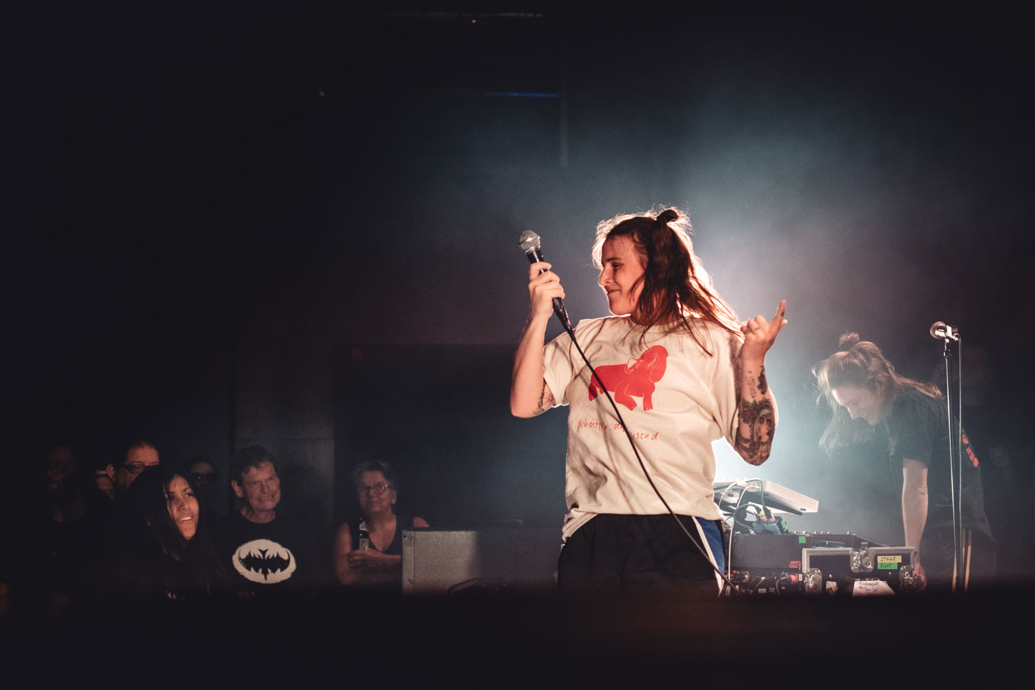 Was war das denn bitte für ein Abriss?! Kochkraft durch KMA haben am 30. Oktober das Ampere in München ordentlich aufgemischt. Selten hab ich so eine Energie gesehen, wie sie Frontfrau Lana auf und vor die Bühne bringt. By the way: ich hab auch noch nie jemanden knapp 1,5 Stunden so viel lachen gesehen wie die Legende Nicki Louder an den Synthesizern. Schlechte Laune sucht man auf dieser Bühne vergeblich! Der Mix aus Punk und derben, elektronischen Elementen funktioniert live richtig gut und animiert auch in der letzten Reihe zur sportlichen Betätigung. Sowohl die Texte als auch die Ansagen – dafür ist Schlagzeuger Beray zuständig – sind gleichermaßen gesellschaftskritisch wie humorvoll. Dabei darf natürlich auch der politische Mittelfinger nicht fehlen!