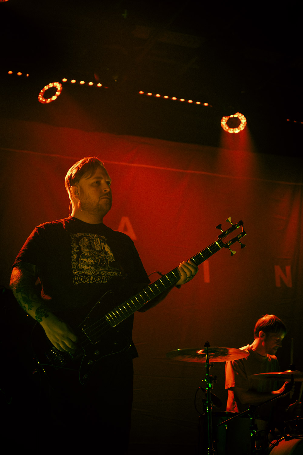 Vs Self machen sozusagen da weiter, wo Pijn aufgehört haben. Statt ganz auf Gesang zu verzichten, wird der dichte gitarrenlastige Sound gleich von zwei Sängern und einem Schellenkranz ergänzt. Das klingt jetzt erstmal ungewöhnlich, handelt es sich bei den Kaliforniern doch um eine Screamo-Band. Aber der Schellenkranz wird die Bühne heute nicht das letzte Mal gesehen haben. Aber dazu später mehr. Ich bin auf jeden Fall großer Fan!