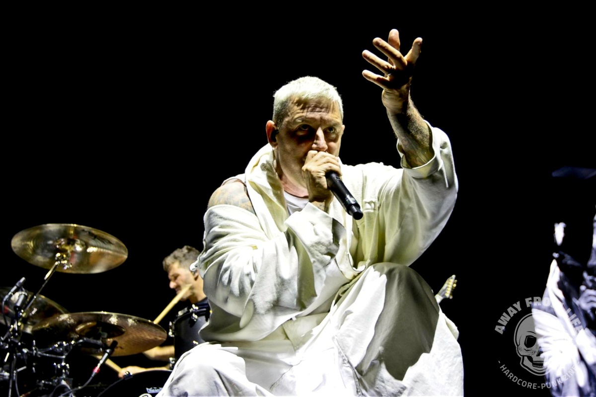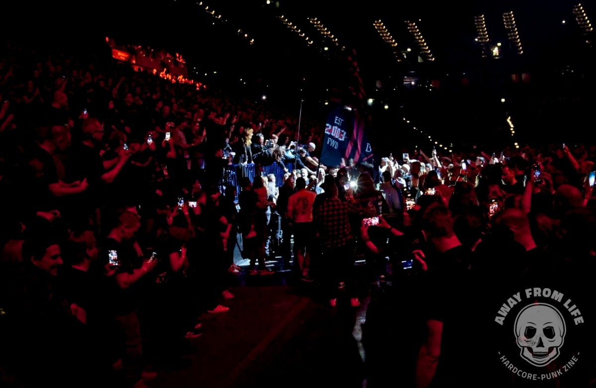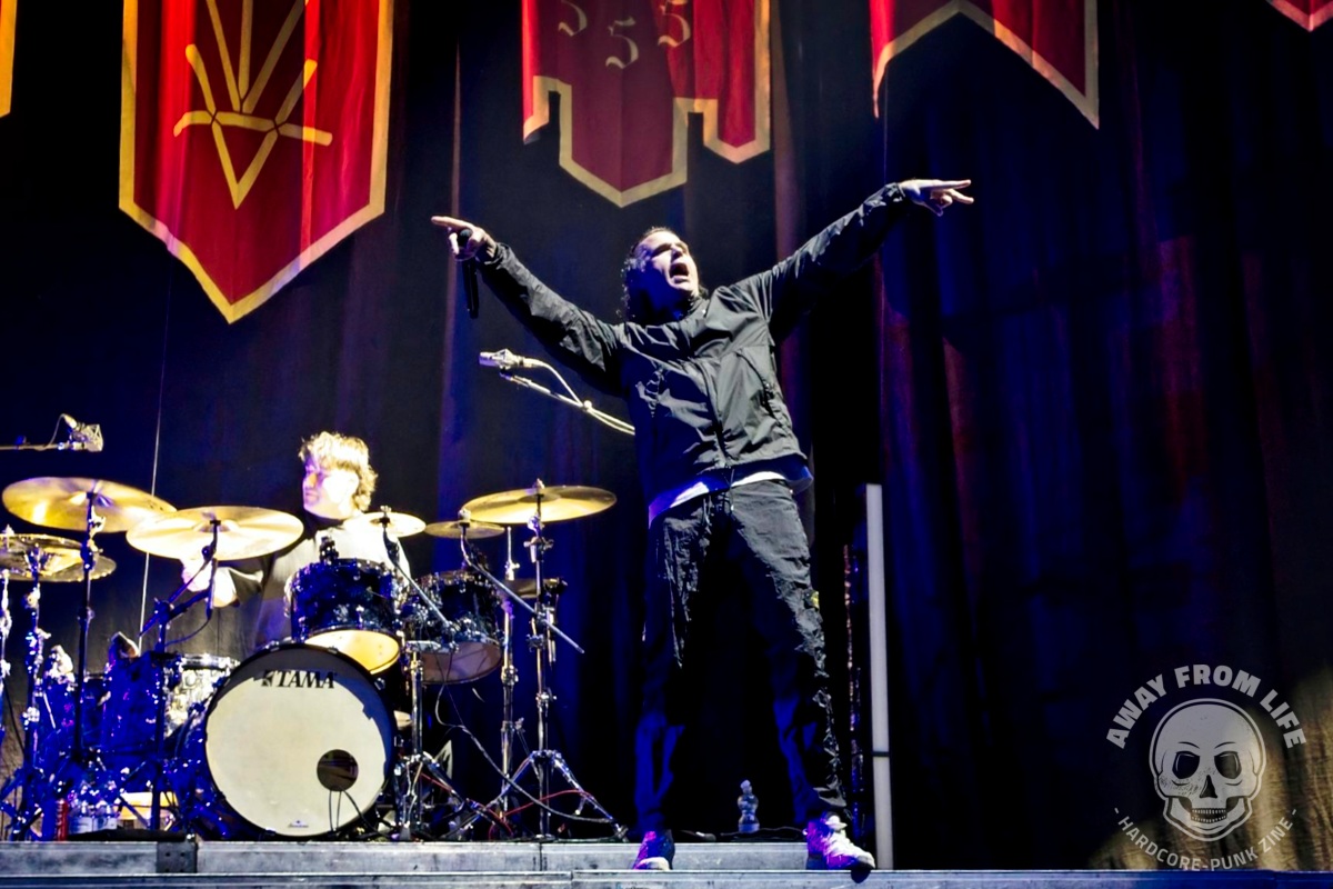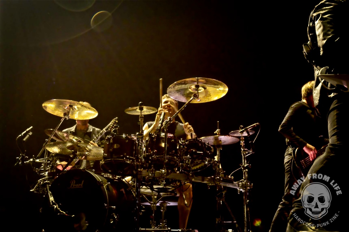 Parkway Drive sind nun auch in Europa mit ihrer 20 Year Anniversary Tour unterwegs. Und mit im Gepäck ist die ganz große Metal Show. Und Show ist hier wörtlich zu nehmen bei dem, was hier alles aufgefahren wird: Pyrotechnik, eine hebbare Brücke zwischen Hauptbühne und B-Stage in der Mitte des vorderen Bereichs, ein drehbarer Drum-Riser, diverse Tänzer, Streicher, mehrere Outfits, ein künstlicher Regenvorhang, wechselnde Deko-Elemente und so weiter und so fort… Die Band aus Australien zelebriert die Möglichkeiten, die sie dank des Erfolges ihrer mittlerweile sieben Studioalben haben – ohne dabei den Kontakt zum Publikum zu vermeiden oder gar zu verlieren. So beginnt die Show mit einem Gang von hinten durch die Menge und bei Idols and Anchors taucht Winston McCall plötzlich auf einem kleinen Tritt in der Menge auf, nur um das Publikum sofort in einen riesigen Circle Pit mit ihm im Zentrum zu dirigieren.