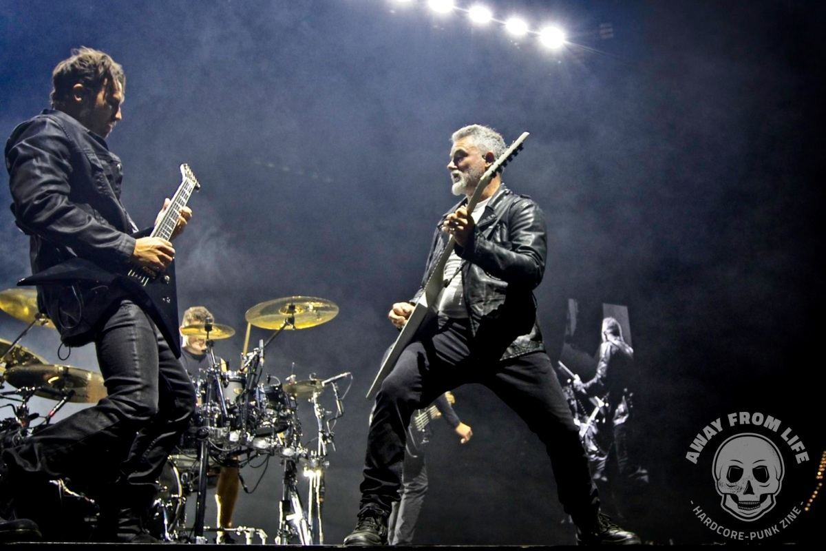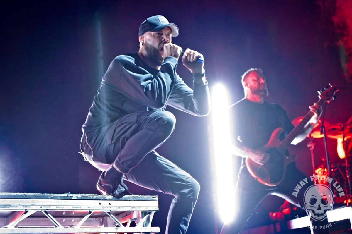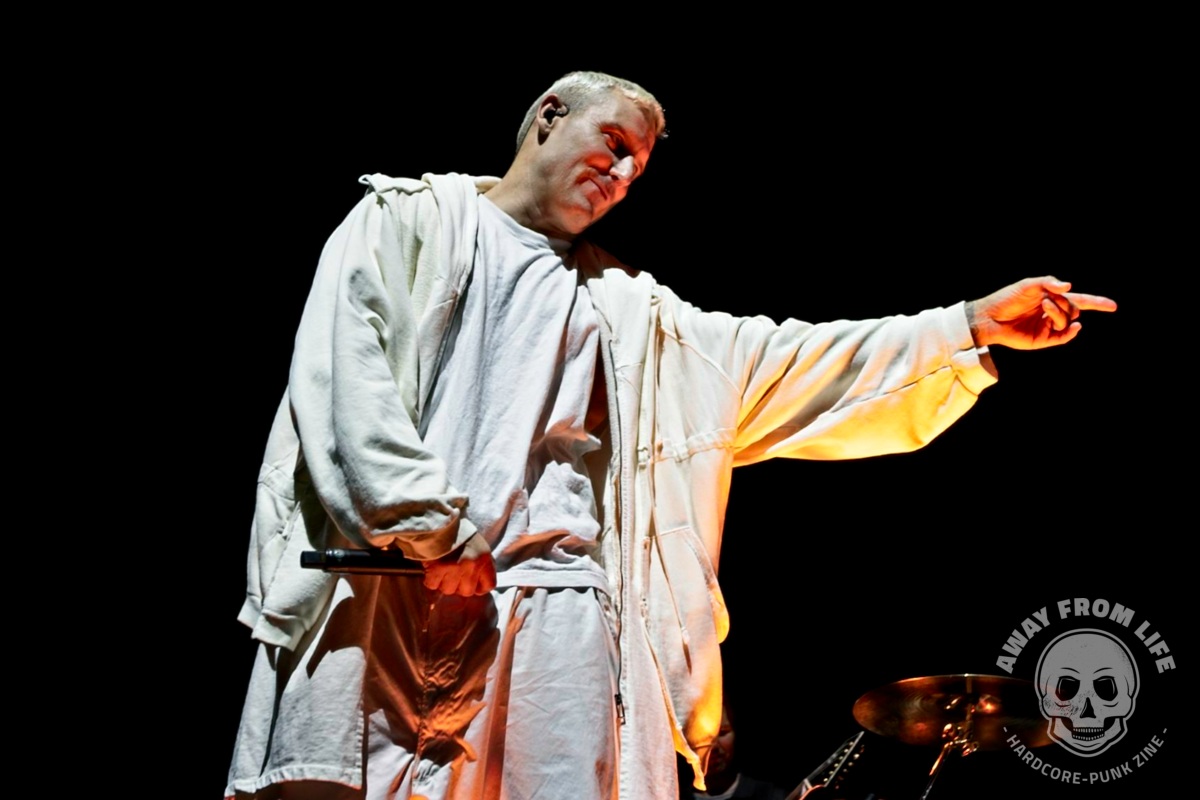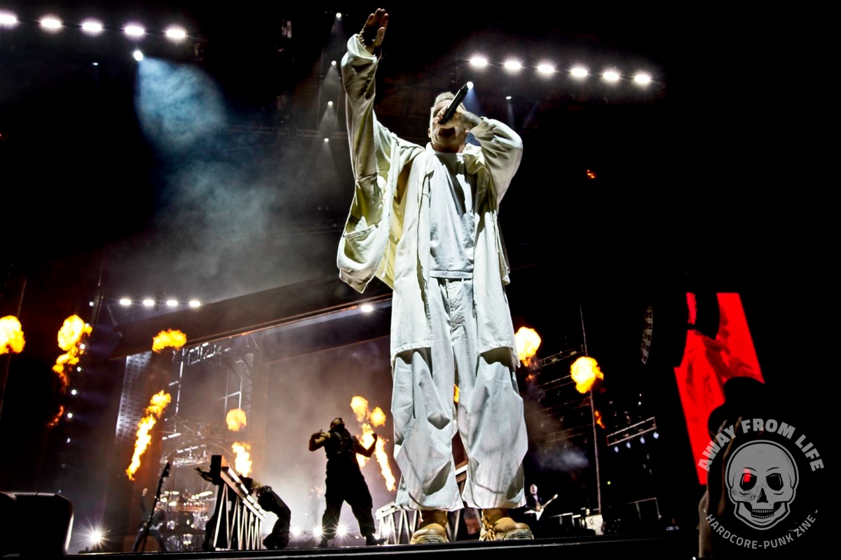Parkway Drive sind nun auch in Europa mit ihrer 20 Year Anniversary Tour unterwegs. Und mit im Gepäck ist die ganz große Metal Show. Und Show ist hier wörtlich zu nehmen bei dem, was hier alles aufgefahren wird: Pyrotechnik, eine hebbare Brücke zwischen Hauptbühne und B-Stage in der Mitte des vorderen Bereichs, ein drehbarer Drum-Riser, diverse Tänzer, Streicher, mehrere Outfits, ein künstlicher Regenvorhang, wechselnde Deko-Elemente und so weiter und so fort… Die Band aus Australien zelebriert die Möglichkeiten, die sie dank des Erfolges ihrer mittlerweile sieben Studioalben haben – ohne dabei den Kontakt zum Publikum zu vermeiden oder gar zu verlieren. So beginnt die Show mit einem Gang von hinten durch die Menge und bei Idols and Anchors taucht Winston McCall plötzlich auf einem kleinen Tritt in der Menge auf, nur um das Publikum sofort in einen riesigen Circle Pit mit ihm im Zentrum zu dirigieren.