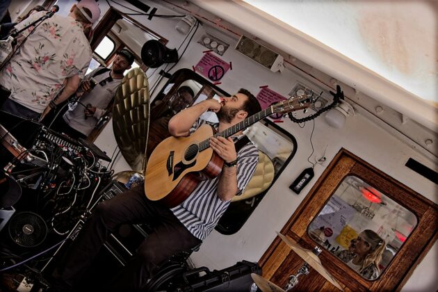 Am dritten Tag des Festivals standen neben einigen Akustik-Sets in der Überquell Brauerei zwei sogenannte Closing Rides, also erneute Fahrten auf der MS Tonne durch den Hafen an. Ausgewählt wurde die erste, die mit einem Akustik-Set des Kanadiers Guilhem sowie einem erneuten Auftritt von Wasted Years begann.