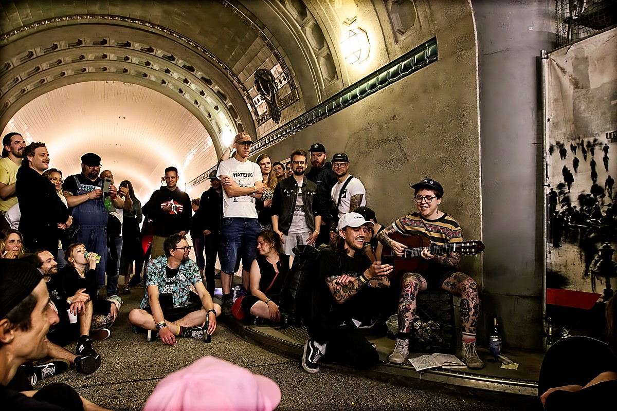 Das offizielle Programm war zwar beendet, aber dann gibt es noch immer diese ganz besonderen Momente. Über Mundpropaganda verbreitete sich den Tag über, dass es noch einen weiteren Auftritt nach Mitternacht im Alten Elbtunnel geben sollte. Hier spielte dann Sue von Between Bodies solo aka Moon Junior und nur mit Akustik-Gitarre ein Set – Gänsehaut inklusive.