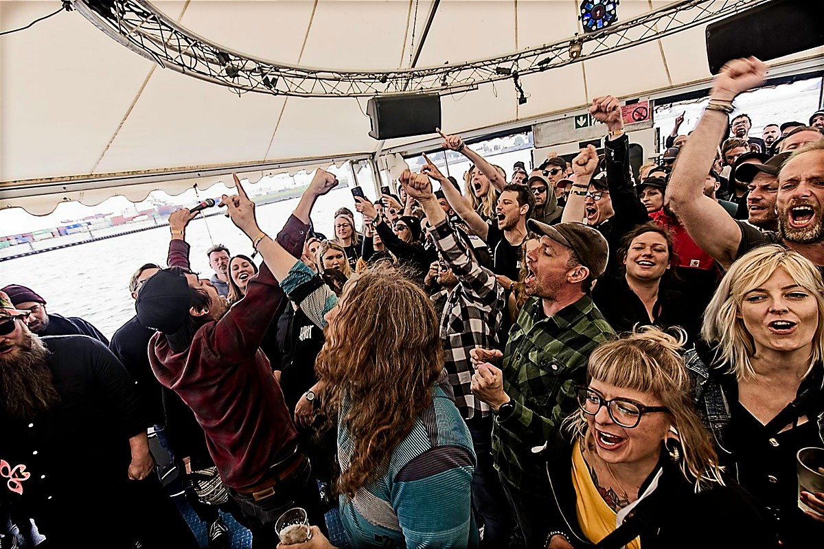 Gerade die Shows auf dem Wasser, in der Regel auf Barkassen, die sonst für Hafenrundfahrten genutzt wurden, sind immer wieder ein Highlight des Festivals. Auf der Elbe vor dem Hintergrund des Hamburger Hafens, zwischen Containerriesen, Kreuzfahrtschiffen, Ausflugsfahrten und Hafenfähren finden Konzerte statt. Crowdsurfer auf dem Oberdeck ernten verwunderte Blicke der Kreuzfahrttouristen, die gerade ihre Kabinen beziehen…