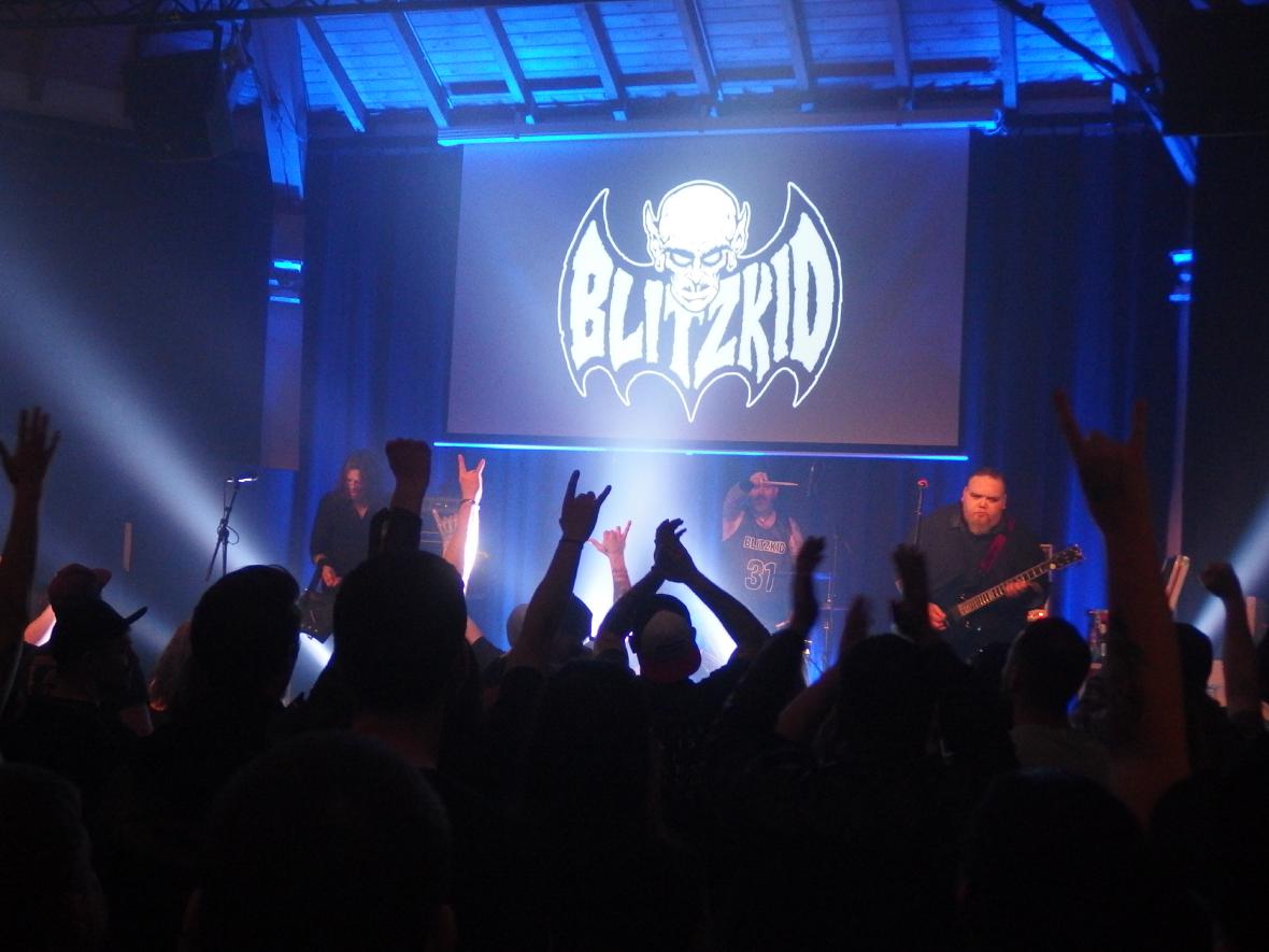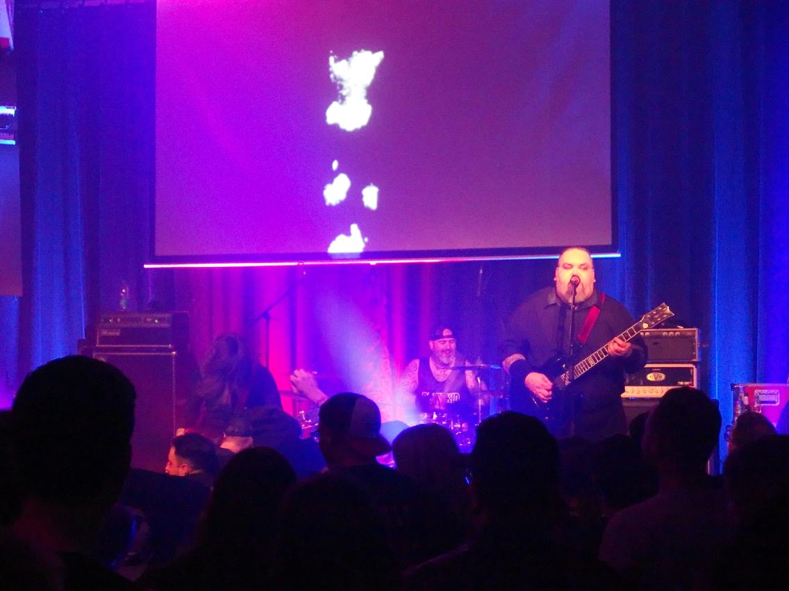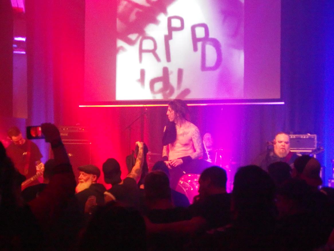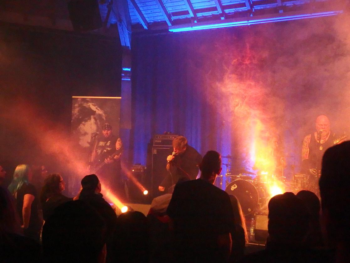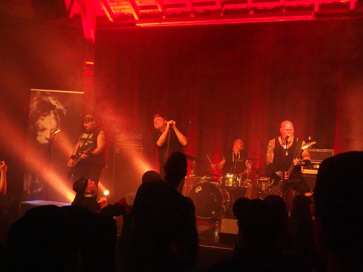 Wenn auch The Crimson Ghosts noch nie von neunkirchen gehört haben, so hatten sie doch mit Blitzkid bereits in Illingen gespielt, was zum Landkreis Neunkirchen gehört. Die Amis jedenfalls erinnerten sich an diese Zeit und in einem emotionalen Statement erzählten sie von den harten, aber doch schönen Nächten in dem Jugendzentrum und erzählten, dass jedes Hotel dort verflucht gewesen sei. Auch ansonsten waren Argyle Goolsby und TB Monstrosity sehr gut drauf. Zwischen 2012 und 2019 aufgelöst und seitdem wieder zusammen, hatten sie sich für eine Tour tatsächlich Ryan Manning ausgeliehen, der seit 2022 für Pentagram trommelt und sich das gesamte Set in vier Stunden draufgeschafft hatte. So jedenfalls die Legende. Er gehört jedenfalls wohl nun fest zur Band. Und was es heißt ein solches Set draufzuschaffen: die Band spielt ja bekanntlich Misfits-beeinflussten Punk und spielte mal locker länger als eine Stunde. Insgesamt 21 Songs.