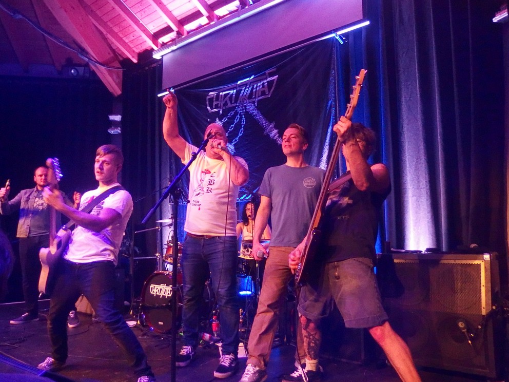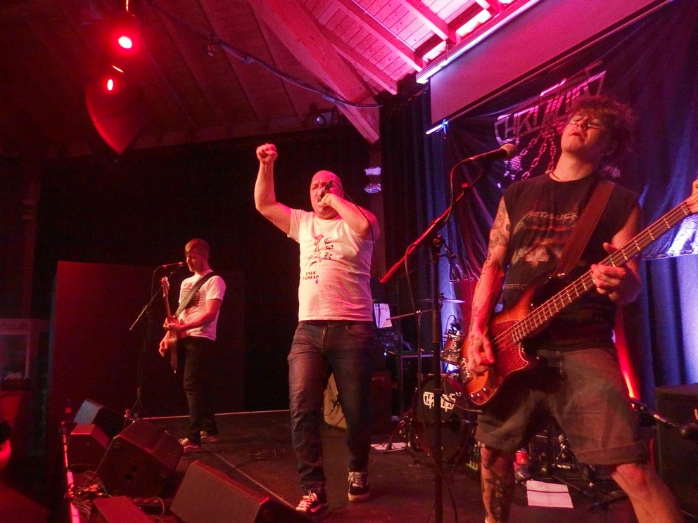 Pünktlich zu Chaos Commute war ich dann auch wieder da. Und was soll ich sagen: für mich die Entdeckung des Festivals. Ein Rockduo aus Berlin, bestehend lediglich aus Gitarre udn Schlagzeug, reduzierter Sound, aber total druckvoll. Besonders bemerkenswert das das wunderschöne antifaschistische Stück One Way. Mit Max wohl seit ihrem Support für die Richie Ramones-Tour bekannt hatte die Band sicherlich den weitesten Anfahrtsweg. Eine sehr schöne Show ohne Schnörkel. Sehr sympathische Menschen. Mit ihrem Indie-Rock auch ziemlich einzigartig an diesem Abend.