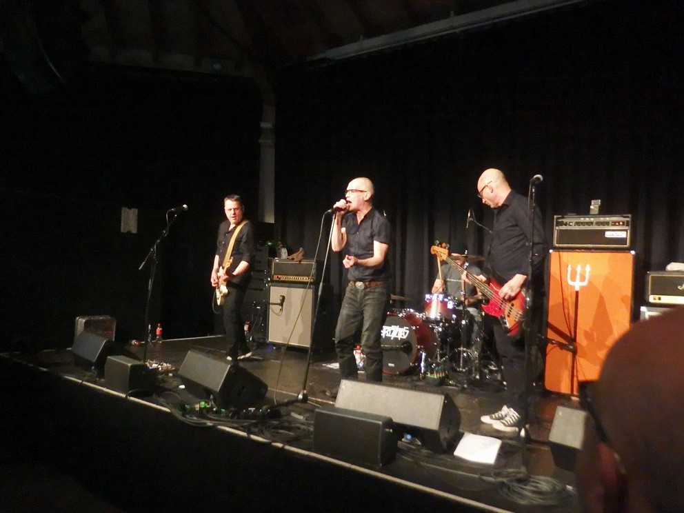 rechtzeitig zu den Speedbottles da zu sein. Aus Idar-Oberstein stammend spielt die Band dreckigen 60er/70er Jahre Rock’n’Roll und damit quasi Protopunk. Gut dazu passte die entweder an einen Harlekin oder an Clockwork Orange angelehnte Schminke des Sängers. Der Saal war entgegen meiner erwartung schon sehr gut gefüllt. Ein Beweis für das diesjährige hochkarätige Line-up. Niemand wollte was verpassen. Jedenfalls begeisterten die Speedbottles mich sehr. Meine Versuche, eine Platte von ihnen zu kaufen, scheiterten jedoch immer wieder das niemand am Merchstand war.