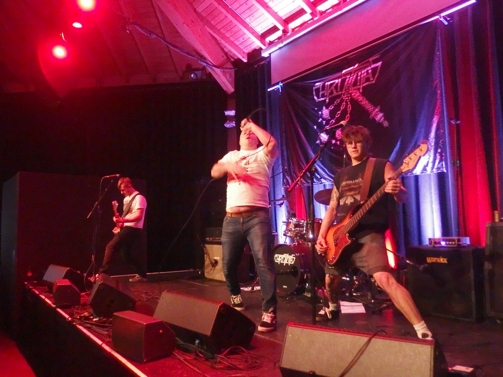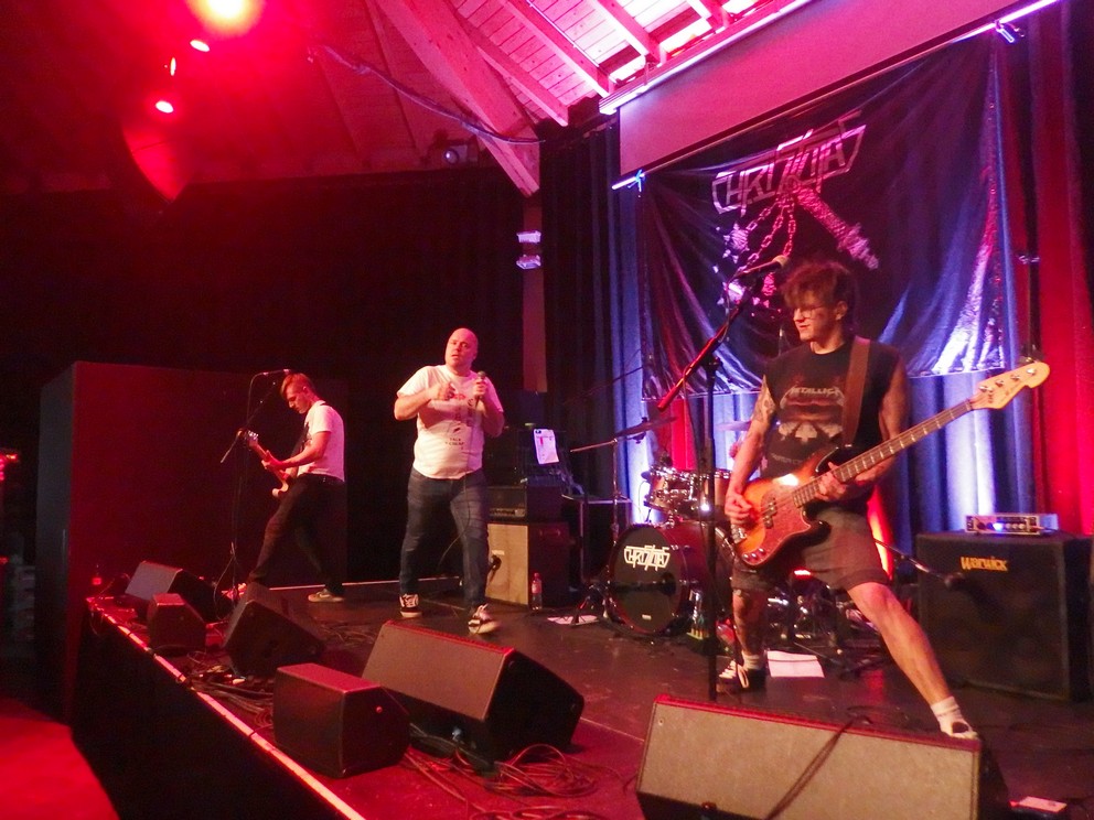Pünktlich zu Chaos Commute war ich dann auch wieder da. Und was soll ich sagen: für mich die Entdeckung des Festivals. Ein Rockduo aus Berlin, bestehend lediglich aus Gitarre udn Schlagzeug, reduzierter Sound, aber total druckvoll. Besonders bemerkenswert das das wunderschöne antifaschistische Stück One Way. Mit Max wohl seit ihrem Support für die Richie Ramones-Tour bekannt hatte die Band sicherlich den weitesten Anfahrtsweg. Eine sehr schöne Show ohne Schnörkel. Sehr sympathische Menschen. Mit ihrem Indie-Rock auch ziemlich einzigartig an diesem Abend.