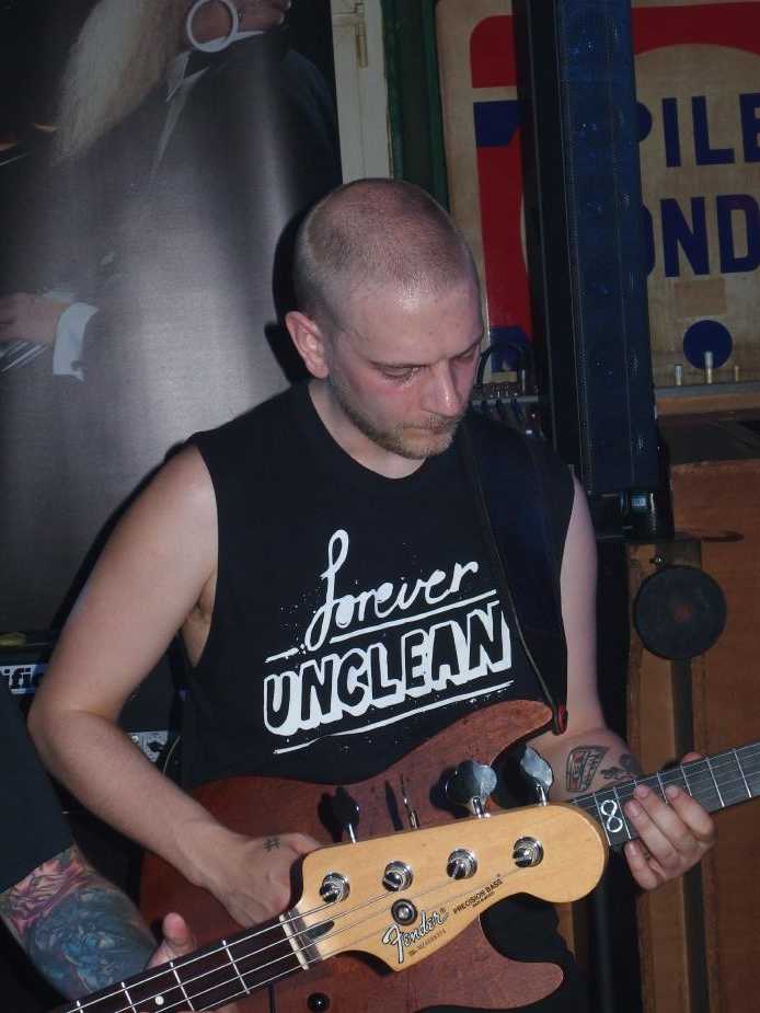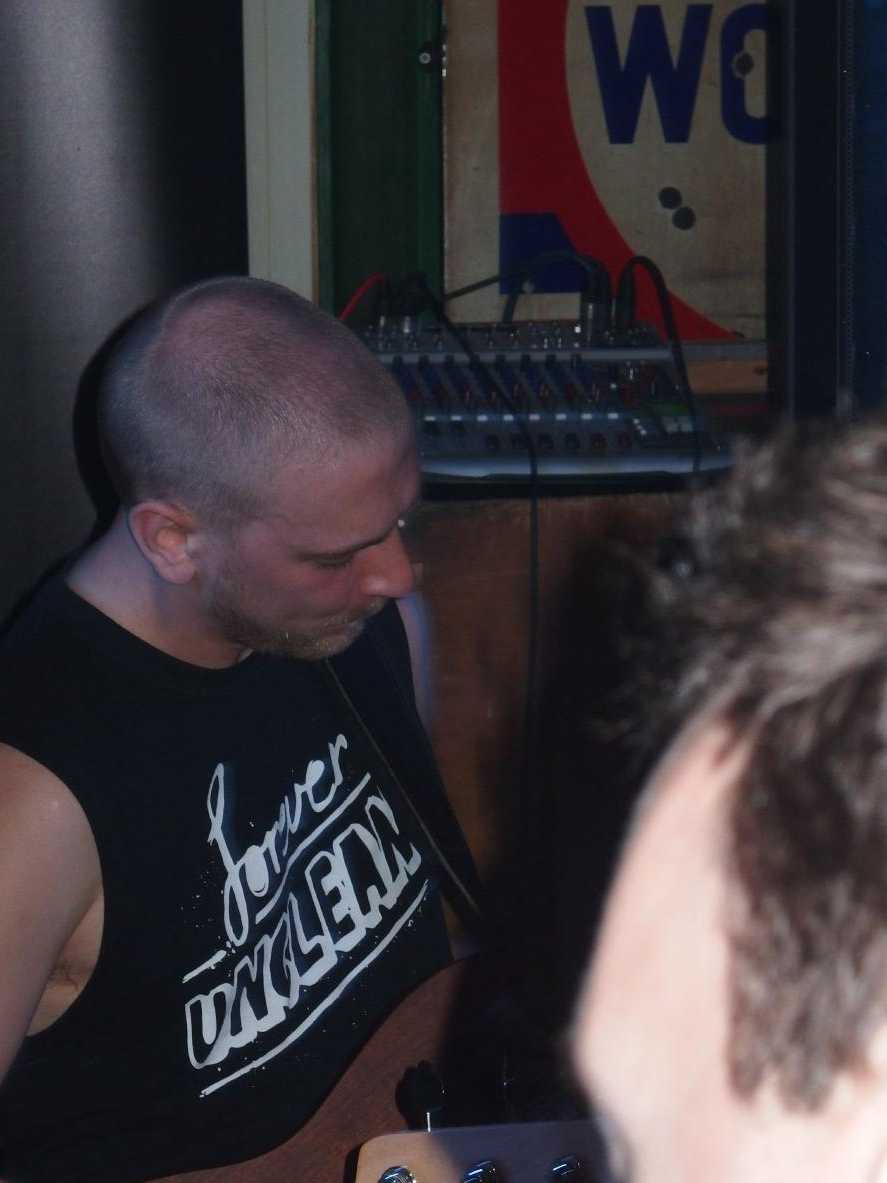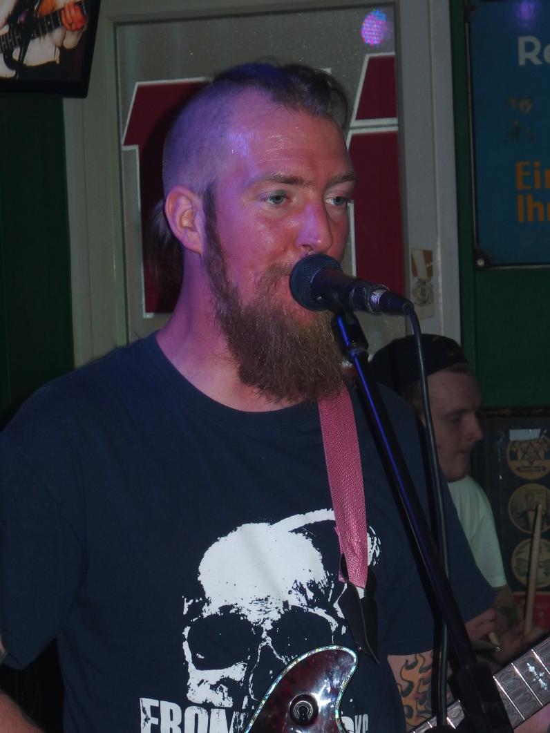 Darko aus Guildford (dort kommen übrigens auch The Stranglers her) sind ebenfalls im Melodic Hardcore Punk engagiert. Musikalisch etwas verfrickelter und mehr Breaks, dazu einige imposante Rock- und Metal-Riffs. Ab und an etwas zu viel für mich, es blieb aber ein guter Gesamteindruck, der sich dann auch im Plattenkauf äußerte. Auch hier beachtlich das gute Zusammenspiel und die allgemeine Spielfreude. Und das mit einem Ersatzmitglied. Mittlerweile trafen auch auch ein paar Spätankömmlinge ein. Auch diese Band gab ihr Bestes und zeigte dem Publikum, dass die britische Hardcore-Szene quicklebendig ist.Und das trotz der schwelenden Hitze. Die beiden Deckenventilatoren, wobei der eine auch gut als Metronom durchgehen würde, machten ihren Job zwar solide, aber konnten die Bühne auch nicht kühl halten. Irgendwann gegen Ende ging auch der Hut rum… Tja, sonst steht man auf der Gästeliste, hier gab man bereitwillig. Auch ein gutes Konzept. Ich hoffe, es kam genug zusammen, um den Abend für die beiden Bands zu retten. Beide Bands gaben jedenfalls ihr Bestes und spielten bis exakt 22:00 Uhr, mehr geht während der Woche im Nauwieser Viertel nicht.