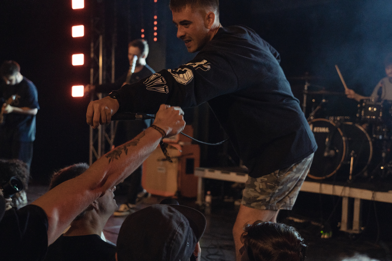 Zu diesem Zeitpunkt war absolut alles brachial voll. Es scheint so als wären die meisten Besucher*innen erst jetzt für Landmvrks gekommen und die Band ist auch ein richtiger Pull-Faktor. Was natürlich auch absolut nachvollziehbar ist. Viele Personen waren auch sehr textsicher und wirklich gezielt für die Band da. Auch als kleines Entgegenkommen der Band gab es für eine glückliche Person eine Cap, wenn er*sie als Erstes erfolgreich auf die Bühne gestagedived ist.