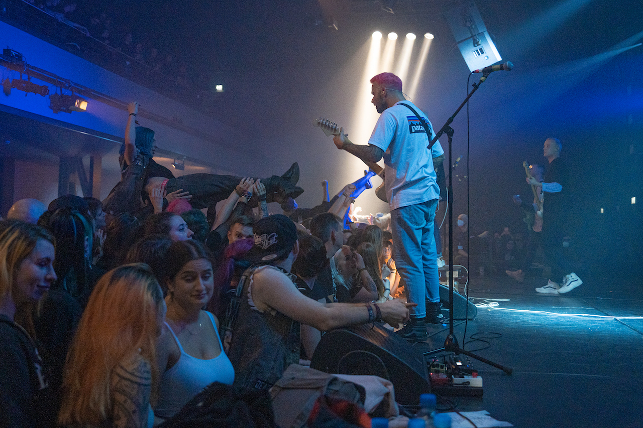 Bei Our Mirage fingen endlich die ersten Crowdsurfer*innen an! Dabei passte der Sänger wirklich immer auf, dass alle sicher hoch und wieder runter kamen. Die Ansage vom ihm, dass alle auf einander aufpassen sollen war sehr richtig und wichtig, denn nicht immer ist ein Sprung in die Menge erfolgreich. Also passt bitte wirklich immer auf! Auch Our Mirage stimmen eine ernstere Note mit ihrem Song Revolve an. Ein wirklich schöner und intensiver Auftritt.