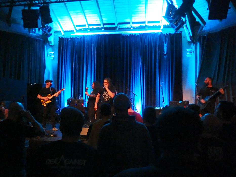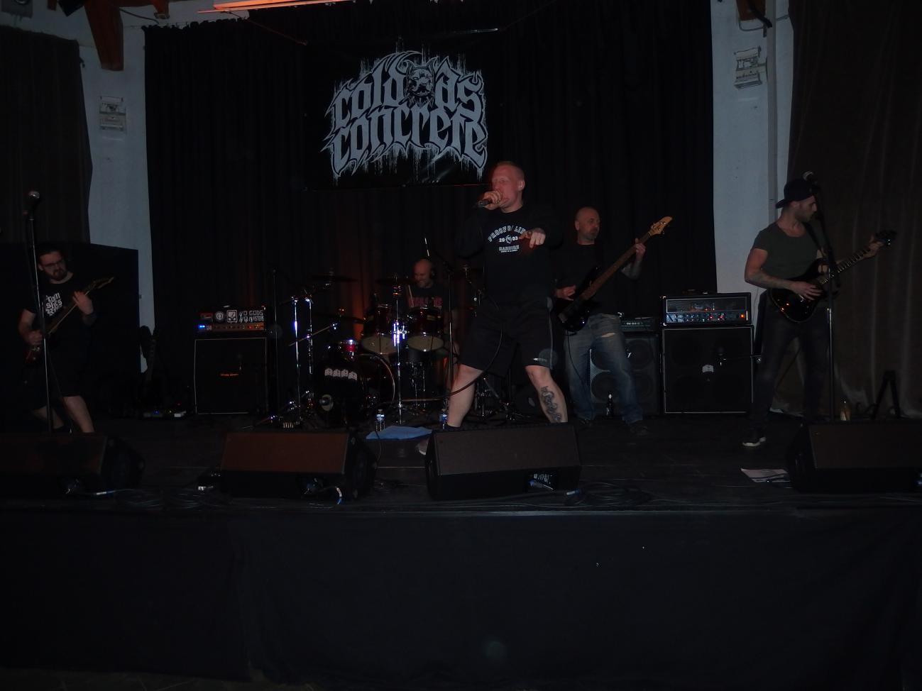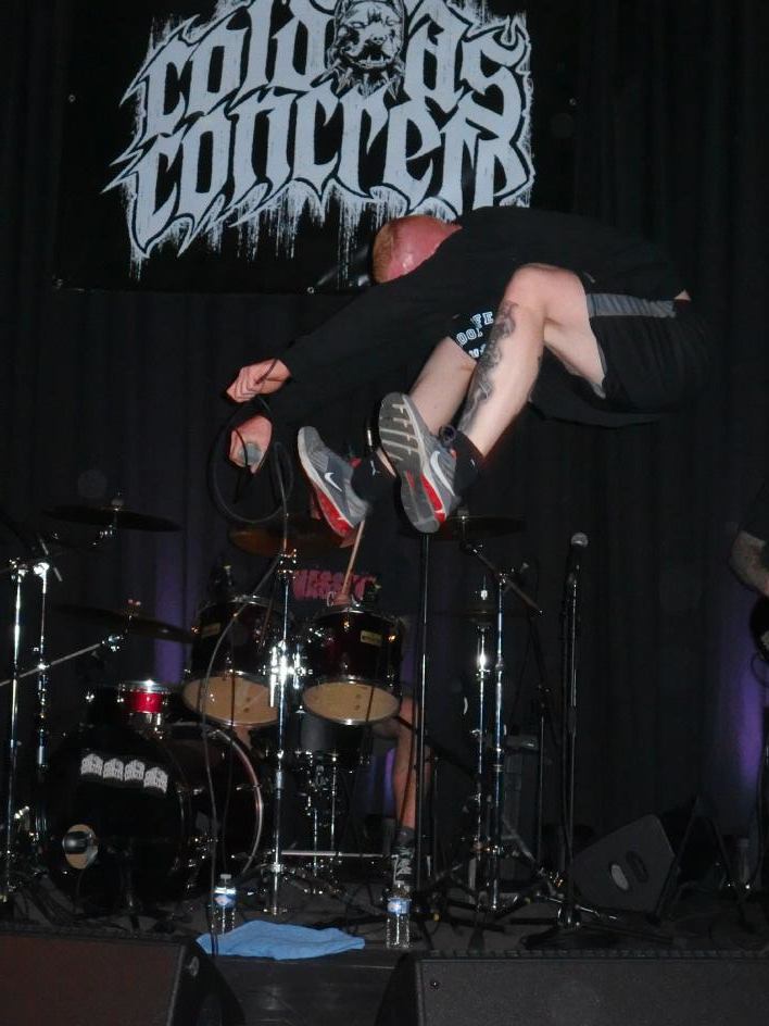 Die mir bislang noch unbekannten Cold as Concrete aus St. Ingbert sprangen kurzfristig ein und präsentierten ihren durchaus prolligen Oldschool-Hardcore. Tatsächlich mir schon etwas zu prollig, fanden sie dennoch den Zuspruch des schon um diese Zeit in durchaus großer Anzahl erschienen Publikums. Dinge, die der Sänger lernen sollte: Graue T-Shirts sehen später nimmer so sauber aus, besonders wenn man a) so viel Bewegungsfreude an den Tag legt. Ah, Moment, genau:
