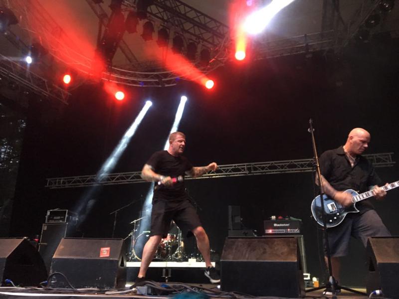 Simon: Auch bei Slapshot merkte man, dass das Punk Rock Holiday eben PUNK ROCK Holiday heißt und nicht Hardcore Holiday, denn auch bei der Hardcore-Punk Legende aus Boston blieben die ganz großen Publikumsmassen aus, auch wenn die Show dennoch ganz ordentlich besucht war. So spielten Slapshot ihr Set in gewohnter Manier herunter. You’re Not Friend Of Mine, Oldtime Hardcore, Hang Up Your Boots – es wurde kein Hit ausgelassen. Höhepunkt war trotzdem als Slapshot Frontmann Choke ein Hockeyschläger von einem Zuschauer zugereicht bekommen hatte und über das ganze Gesicht strahlend posierte. Was für ein Anblick!