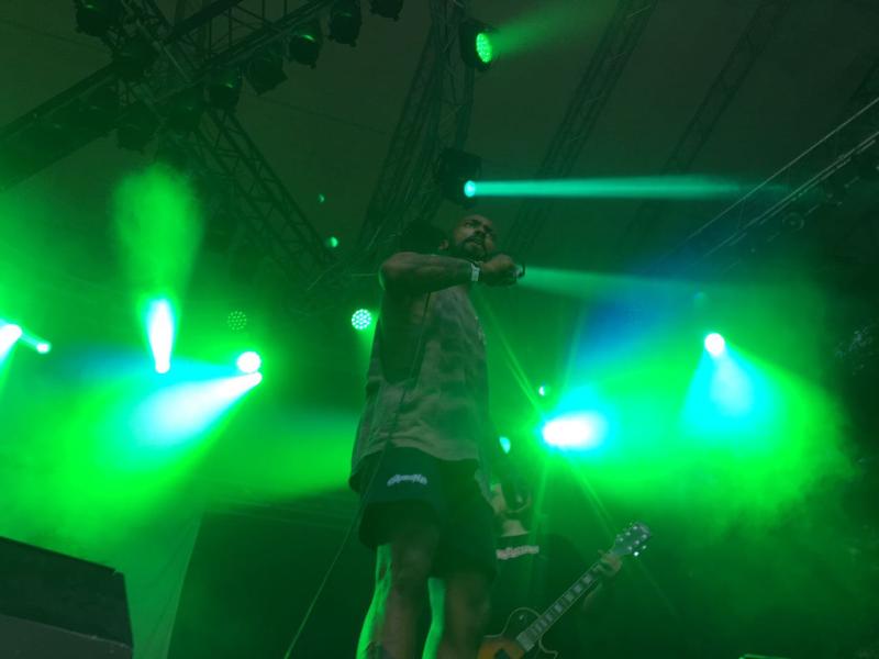 Fischi: Puh, so langsam machen sich vier Tage Festival bemerkbar. Die zahlreichen blauen Flecken vom Anti-Flag Konzert gestern machen die Sache nicht besser. Zu allem Überfluss stürmt es draussen so stark, so dass Pavillons und Zelte an uns vorbeiwehen, Dixie-Klos umfallen und Leute panisch versuchen alles zu sichern was sie erwischen. Und mir schmeckt das Bier nicht mehr! Naja, dann eben Gin-Tonic und haufenweise Melon-Balls an der Bühne. Nachdem der Sturm so stark war, dass einige Konzerte an der Beach Stage abgesagt werden mussten, war ich an diesem Tag gar nicht an der Beach Stage. Das alles tat der guten Stimmung keinen Abbruch, denn der Wetterbericht sah gar nicht so schlecht aus. Also abwarten und Bier, ääh Gin-Tonic im trockenen Auto trinken.