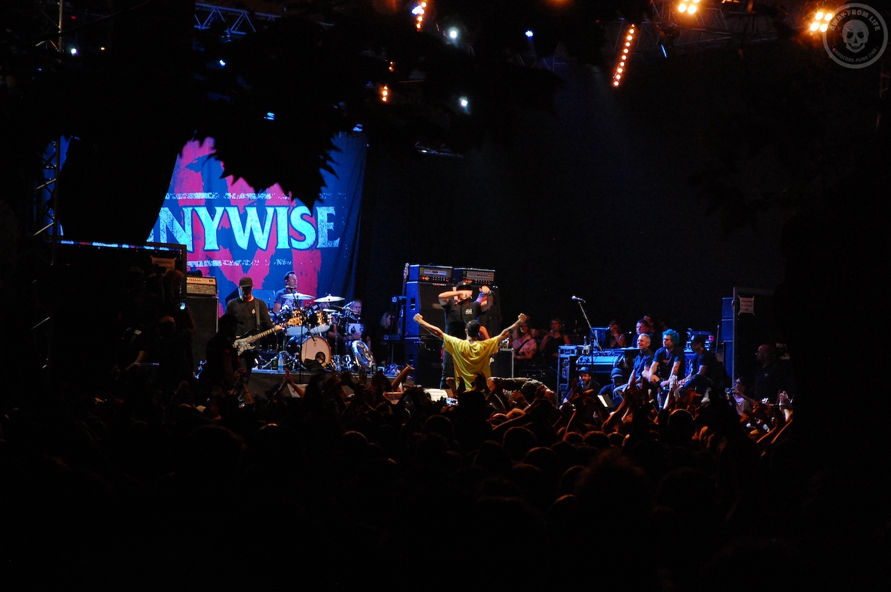 Am Abend wollten wir spätestens zu Masked Intruder wieder an der Main Stage stehen aber das hat irgendwie nicht ganz so geklappt – schade! Dafür waren wir dann zu Pennywise wieder putzmunter. Ehrlich gesagt, kam es mir so vor als würde das gesamte Publikum nur auf etwas warten – wer vor zwei Jahren auf dem PRH war, weiß ganz genau worauf. Bis der Moment jedoch gekommen ist, wurde noch einiges geboten. So fragt Sänger Lindberg auch mal das Publikum nach Songwünschen oder gibt einfach das Mikro direkt an einen textsicheren Fan ab. Irgendwann gab es dann noch ein zuckersüßes Stand By Me Cover. Nach knapp einer Stunde kam dann F*ck Authority und die Spannung war kaum noch auszuhalten, danach übernahm Fat Mike höchstpersönlich am Bass und es folgte endlich die lang ersehnte Bro Hymn. Das Publikum stürmte genau wie vor zwei Jahren die Bühne, begleitet wurde das Ganze von einem Bengalfeuer in der Menge – fantastisch!