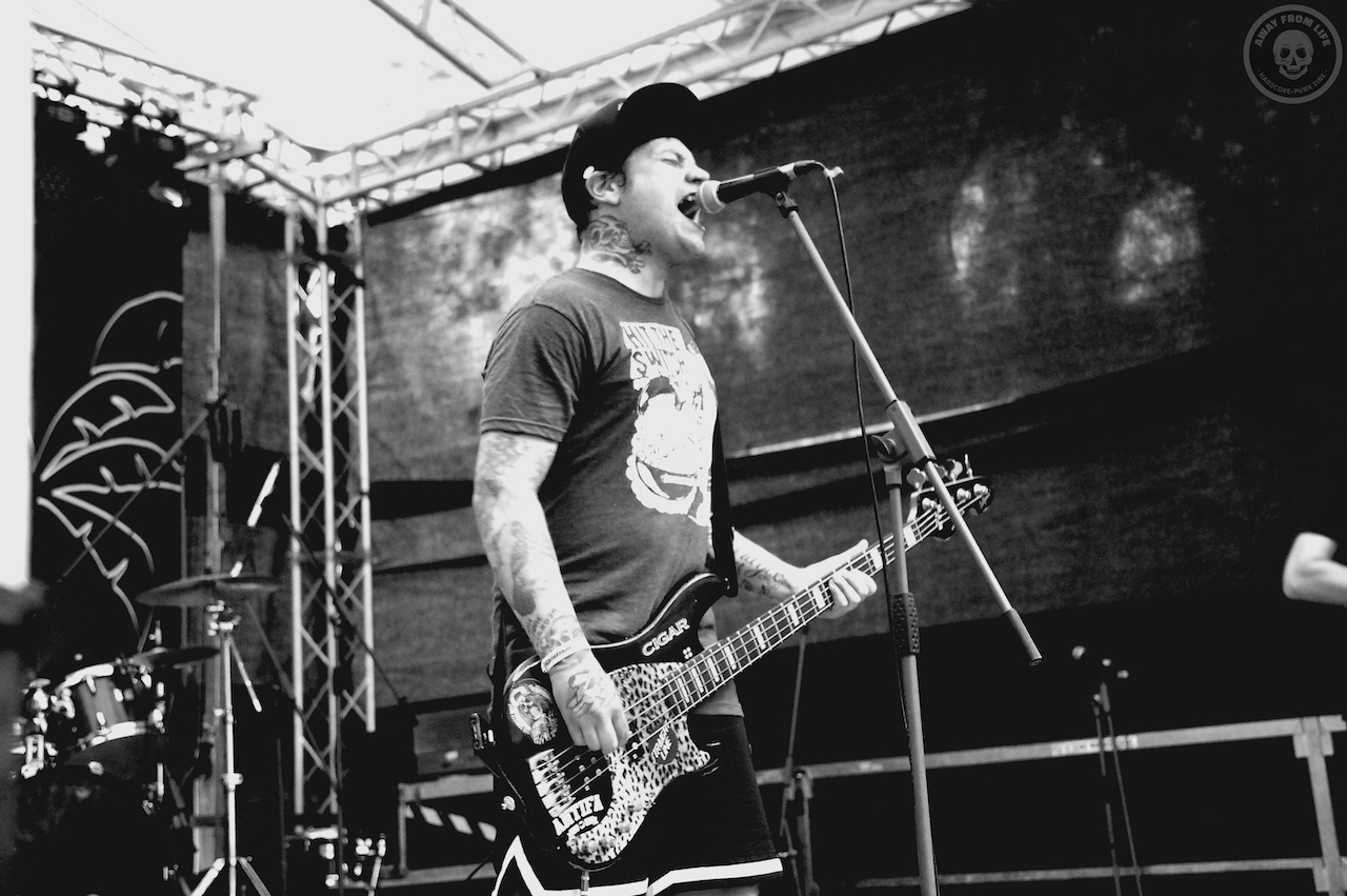 Der ein oder andere möchte noch fragen, was der Traumschwiegersohn Turner eigentlich noch mit Punk zu tun hat, beim ersten Takt von Get Better erübrigt sich allerdings jegliche kritische Nachfrage. Frank Turner & The Sleeping Souls legen eine Energie und Präzision an den Tag, um die jeder Hochkaräter neidisch werden kann. Dass das letzte Album Be More Kind auf diesem Festival dezent deplatziert wäre, ist auch Turner bewusst, so werden lieber die alten Klassiker wie Polaroid Picture oder I Still Believe zum Besten gegeben. Das Publikum in den vorderen Reihen ist vollends dabei und auch in den hinteren Reihen lässt sich anerkennendes Nicken vernehmen. Irgendwann macht sich auch Turner zum Crowdsurfen auf und zum letzten Song I Wanna Dance bittet er um ein wenig Platz auf der Tanzfläche um auch selbst noch eine flotte Sohle aufs Parkett zu legen – sympathisch! Dass es allmählich zu regnen beginnt, bekommt eigentlich niemand mit. Pünkltich zum Headliner des Abends – Descendents – entschied sich auch der Regen dazu eine ordentliche Party zu veranstalten. Die meisten Festivalbesucher interessierte das wenig, der Platz war gut gefüllt und alle sind begeistert. Hier sitzt auch wirklich jeder Ton und zwar nicht nur bei der Band. Hits wie I’m The One oder Who We Are wurden auch vom hinterletzen Eck aus mitgesungen. Wir waren danach nass bis auf die Unterhose und haben den Heimweg angetreten, für After Show waren wir echt zu kaputt…