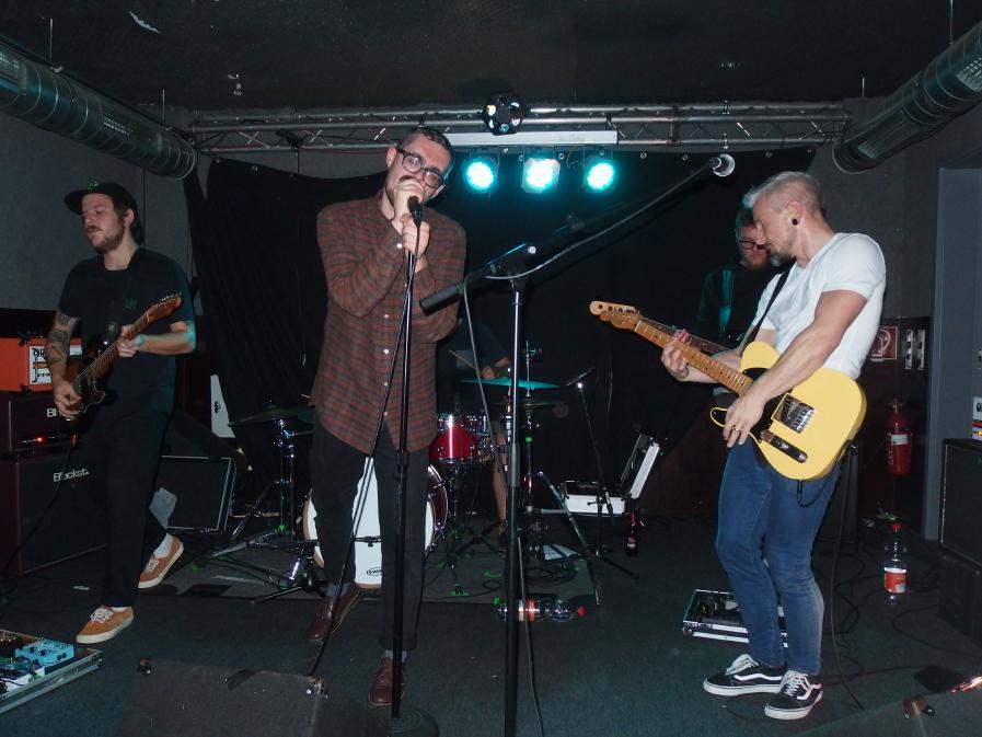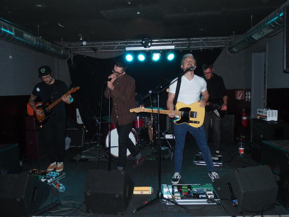 Rivers & Tides, ebenfalls aus Regensburg, waren dann aus meiner Sicht die Gewinner des Abends. Ihr Post-Grunge-Alternative-Rock überzeugte live doch ziemlich. Die Gruppe hat zwei EPs auf dem wunderbaren Midsummer Records-Label veröffentlicht. Insbesondere live kommt die Band sehr druckvoll rüber und kann auch durch den Gesang überzeugen. Von der Stilberatung würde ich nur sagen, dass Jogging-Hose und Leopardenfellschal eine etwas ungewöhnliche Wahl sind. Aber was weiß ich schon… Ich trage „T-Shirt und Jeans und geh damit in den Club“ (mal sehen, wer die Anspielung kennt. Für „hate“ bitte unten Kommentare schreiben…