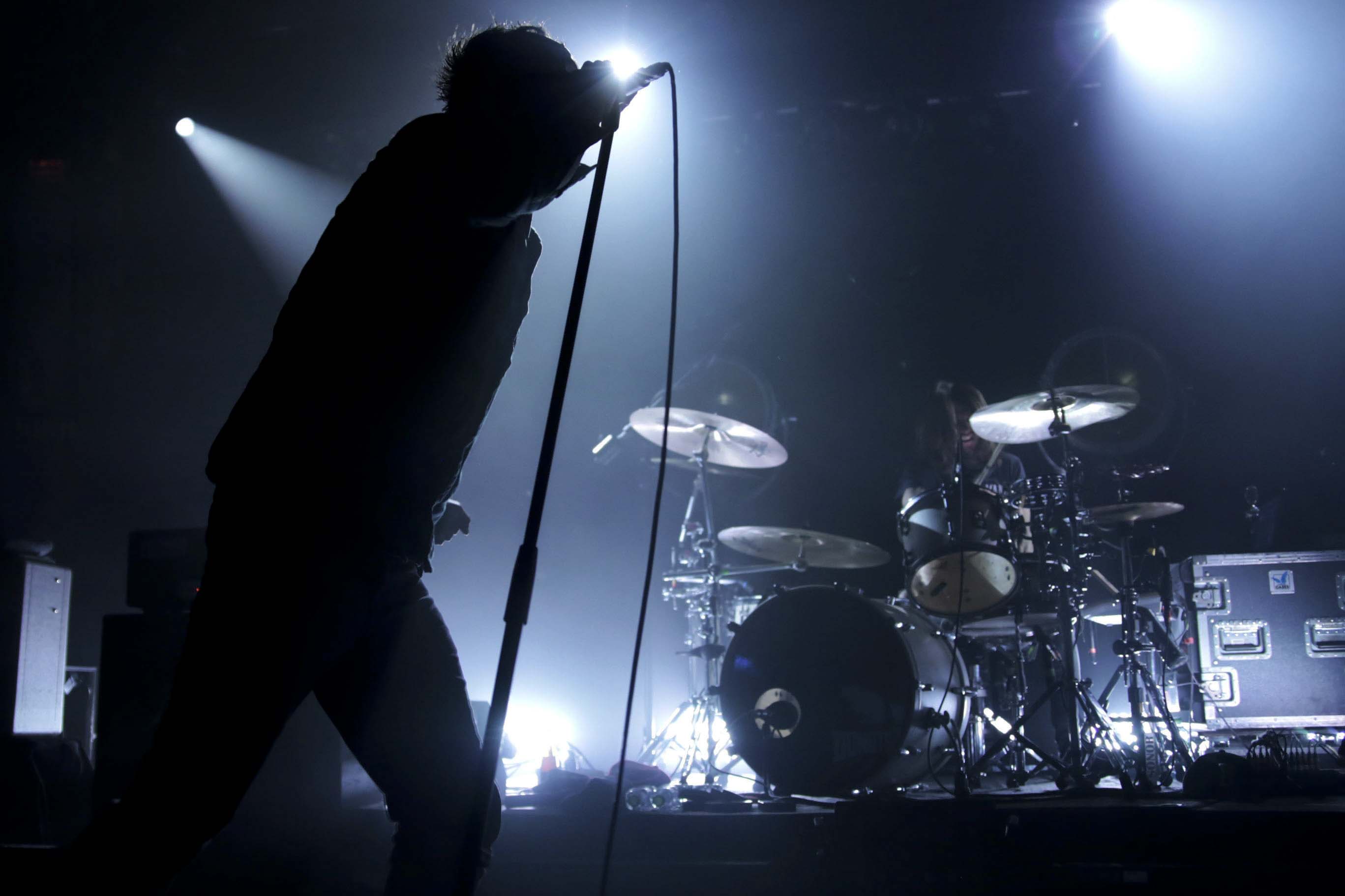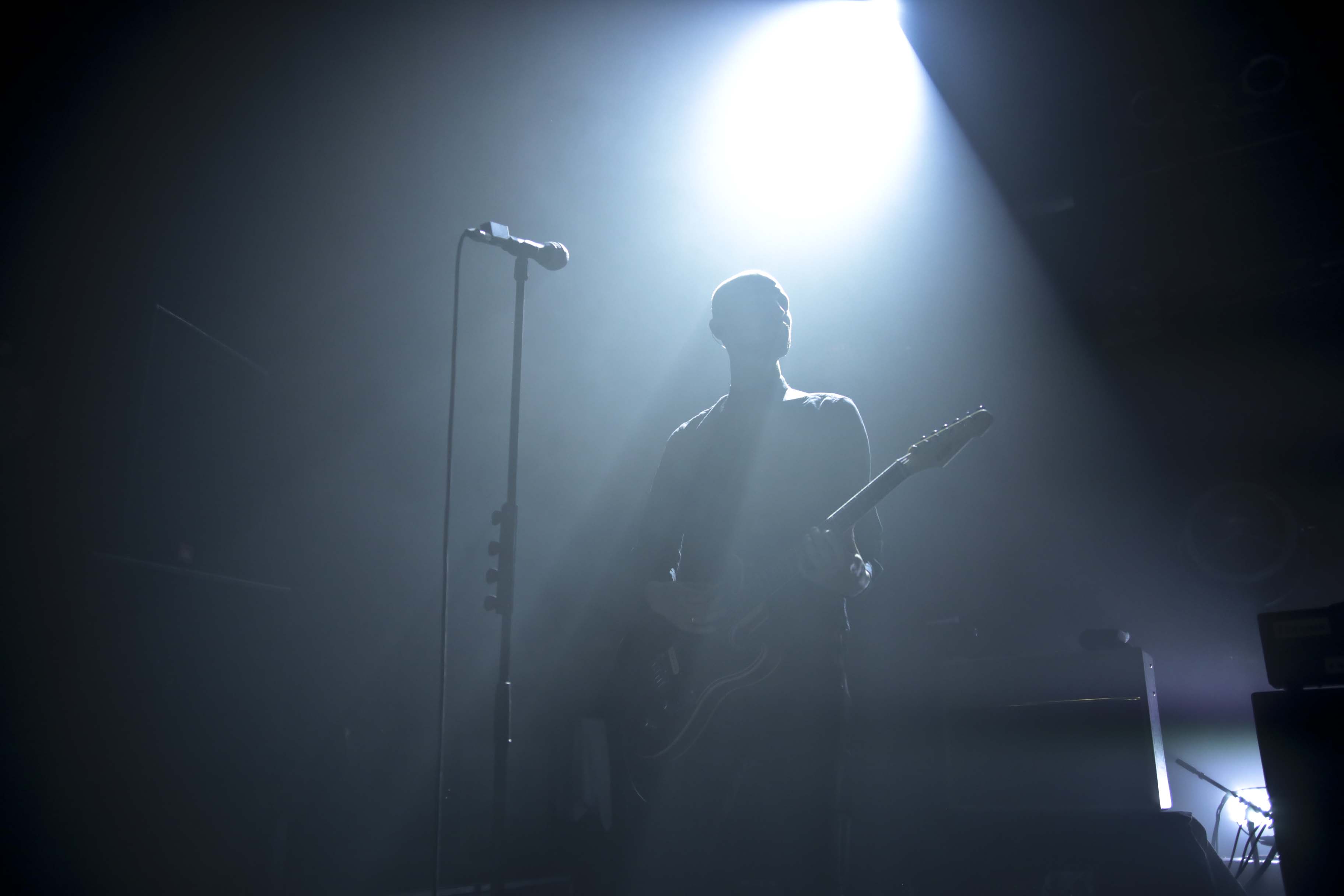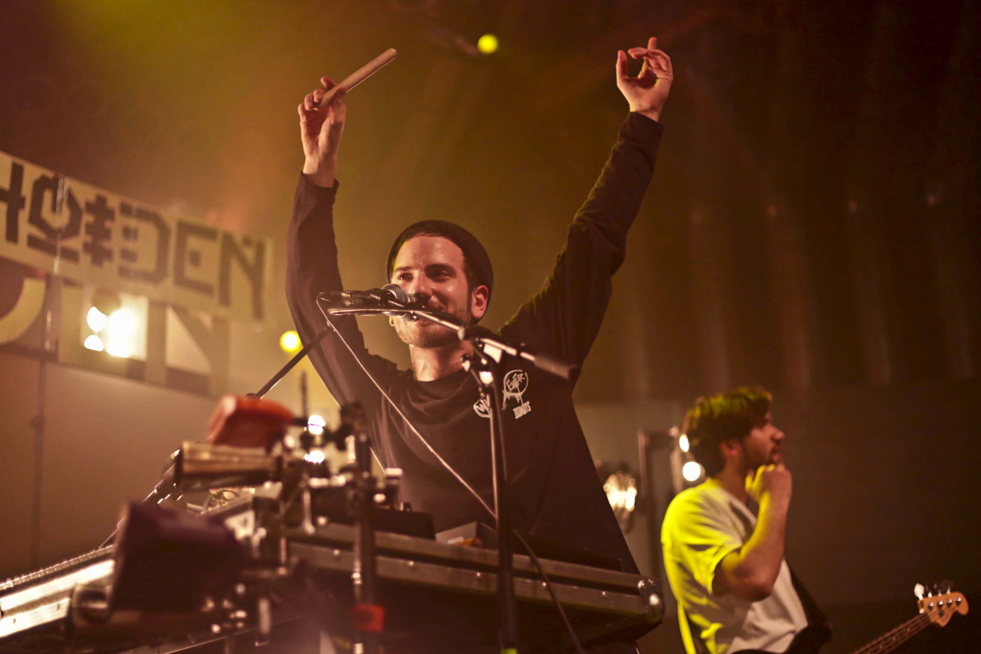 Als Support hatte man Leoniden dabei. Leoniden bewegt sich musikalisch zwischen den Genres. Indie-Pop, Electro, ein wenig Rock – all das hört man zuweil raus. Und sehr viel Kopfstimme, die sehr gekonnt vorgetragen wird. Die Jungs aus Kiel hatten sichtlich Spaß bei der Sache, ob an den in der Mitte der Bühne aufgestellten Synthies oder mit dem Microfon mal hier und mal da. Die Rolle des Gitarristen auf der linken Bühnenseite wurde mir jedoch nicht ganz klar. Das bohlenesque Schwingen der Gitarre, das Balancieren der Gitarre auf dem Kopf, hinter dem Rücken, das Rein- und Rausschlüpfen aus dem Gitarrengurt, das Umwerfen und Auffangen des Mikroständers, das ständige Rumgezappel machte mich eher nervös als dass es für meinen Geschmack der Bühnendarbietung gut getan oder beeindruckt hätte. Aber das Tragen einer Jogginghose fand hier in dem Bewegungsdrang absolute Begründung! Zudem kam von seinem Gesangsmikro irgendwie nichts in meinem Gehörgang an, egal wie energisch der Herr an der Gitarre da reinsang. Absicht oder ein Defekt? Das kann ich nicht sagen.
