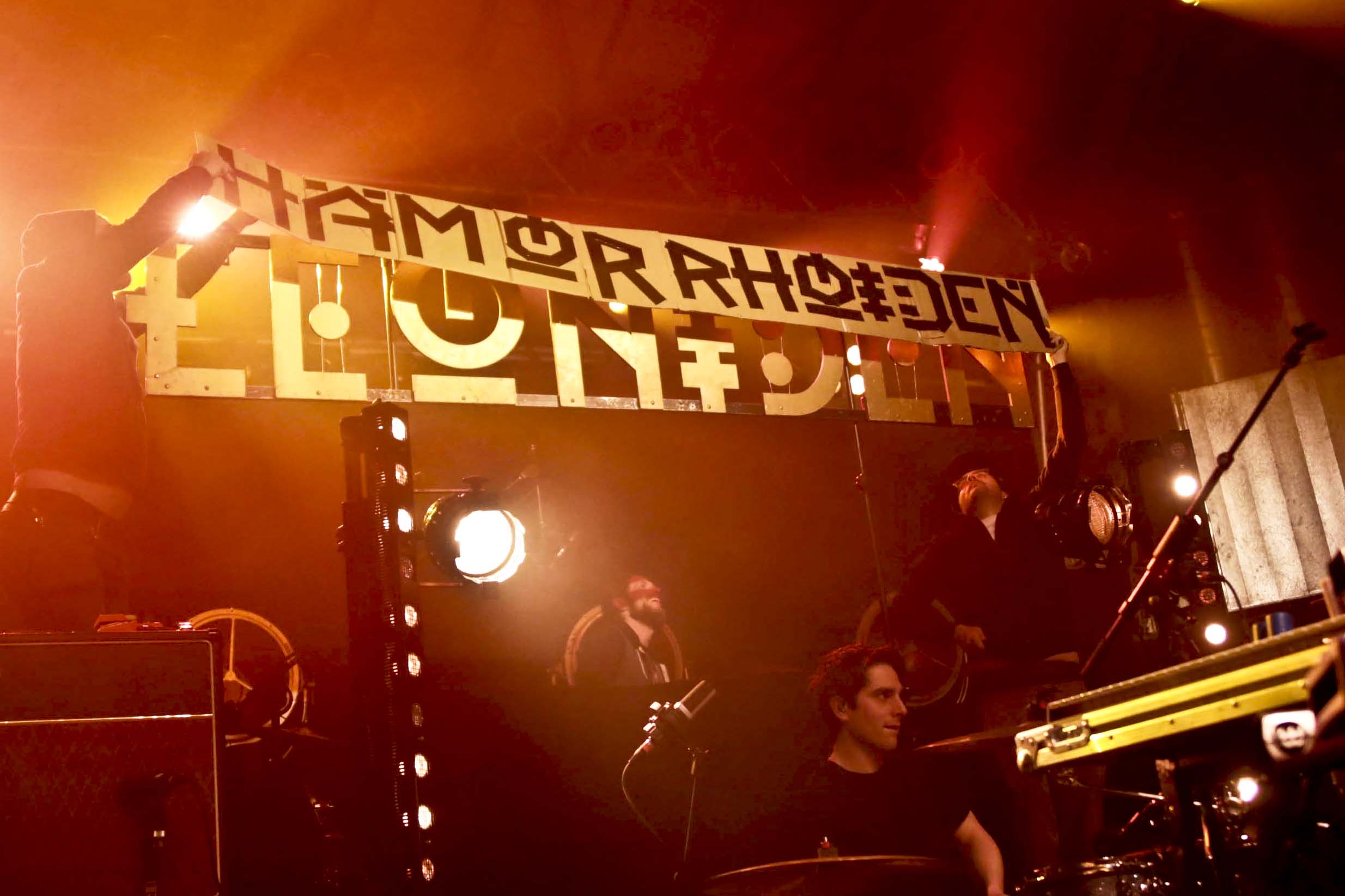 In den ersten Reihen hatten sich jedoch sichtlich eingefleischte Leoniden-Fans eingefunden, die auf ihre Kosten gekommen sein sollten. Für mich passte das einfach nicht so vor die Donots und so blieb es mein Highlight, dass während einem der ersten Lieder der Leoniden-Schriftzug zur Verwunderung der Band mit einem Hämorrhoiden-Banner überhängt wurde.