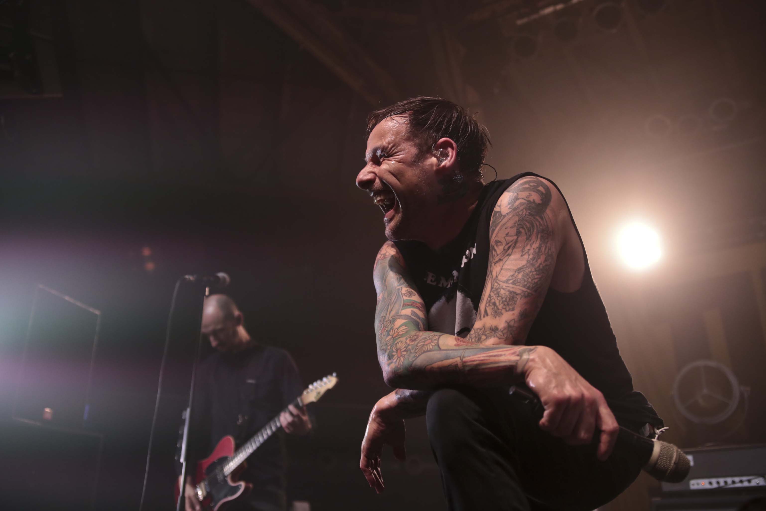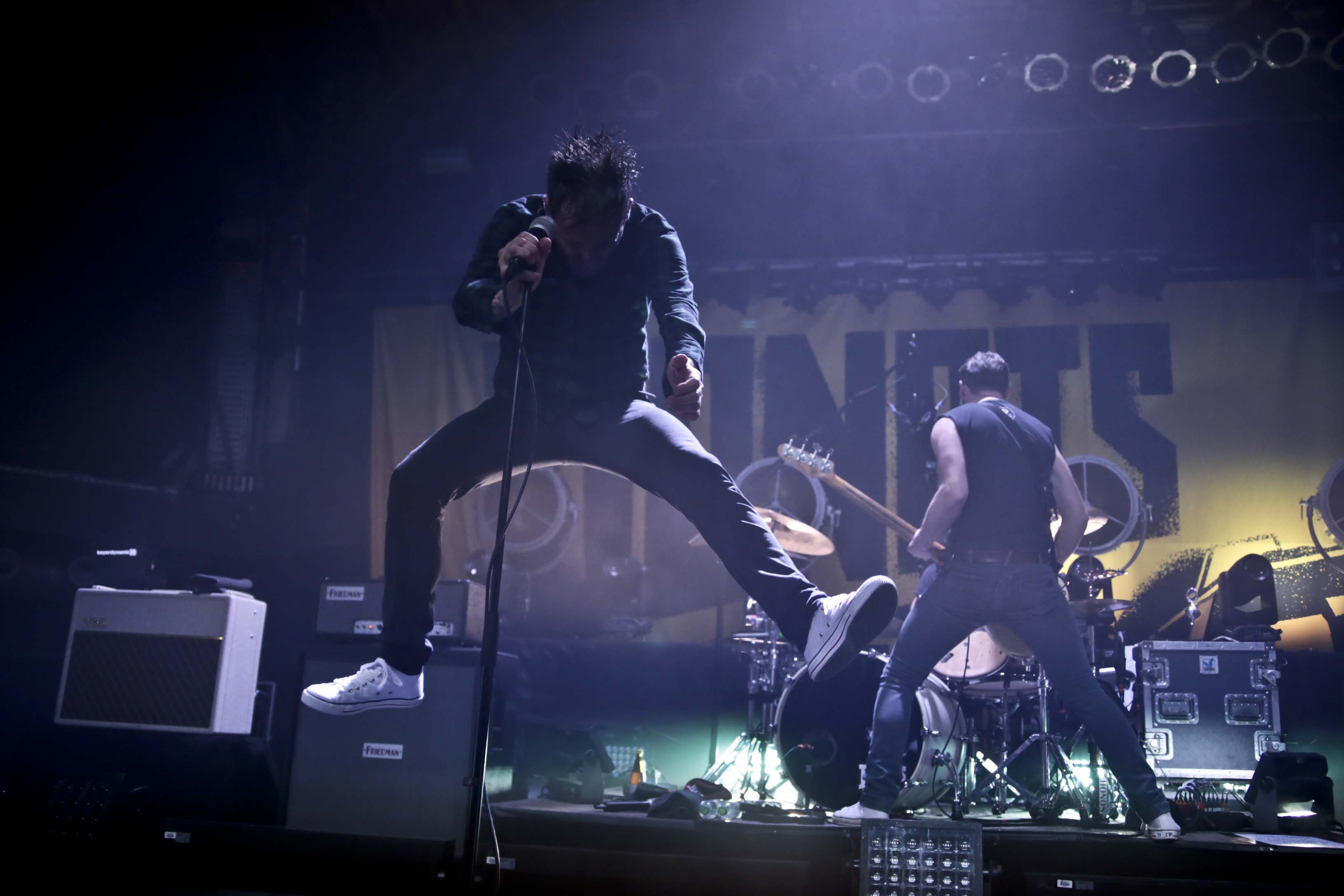 Die Donots starteten gewohnt von 0 auf 100 beim Betreten der Bühne. Eine energiegeladene Show fand ihren Anfang in der (so gut wie – einige wenige Rückläufer gab es wohl durch die Verschiebung des Ursprungstermins) ausverkauften Garage. Ingo sang, sprang und strahlte als sei es der erste Gig seit einer Ewigkeit. Dass die Donots bereits eine komplette Tour zu dem Album hinter sich hatten, das merkte man niemandem an. Die Songauswahl erfolgte, wenig überraschend, schwerpunktmäßig aus den neueren, deutschsprachigen Alben. Mit diesen Songs fühlt die Band sich sichtlich wohl – doch auch alte Songs aus englischsprachigen Zeiten bekamen Ihren Einsatz und wurden vom Publikum mitgefeiert. Mir persönlich gefiel die Live-Version der Songs des neuen Albums auch besser als aus dem heimischen Lautsprecher.