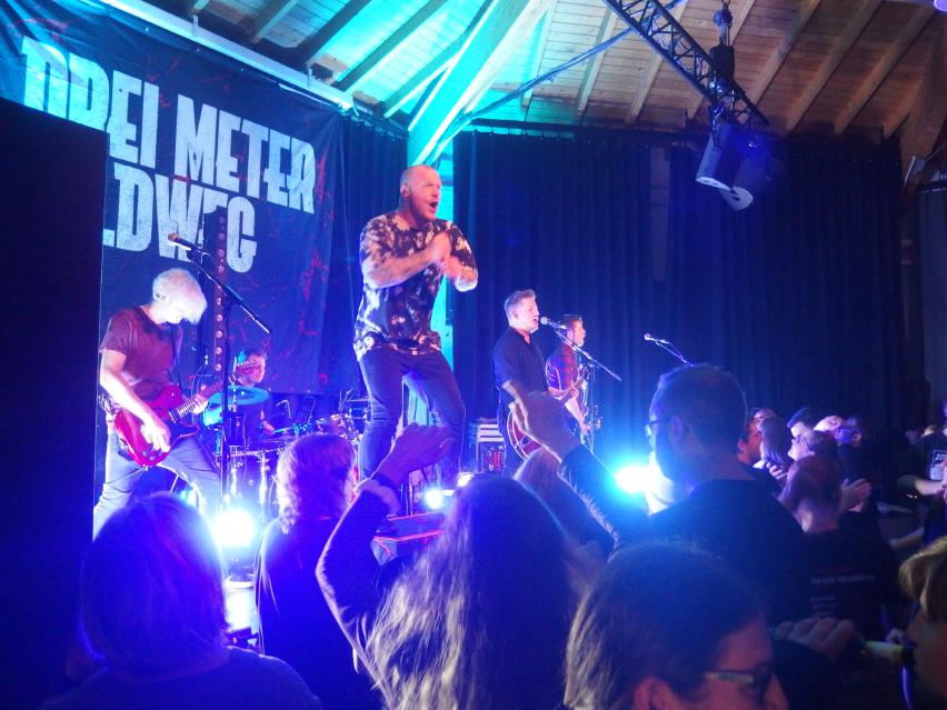 Was danach bei Drei Meter Feldweg abging war allerdings schon krass. Ich wusste, dass sie mit Durak ein Chartalbum hatten, aber seit Sommer, Sonne, Bier und Gewinner, die ich beide reviewt hatte (Gewinner hier, die EP noch für mein altes Webzine) hatte ich mich nimmer groß mit der Band beschäftigt. Außerdem hatte ich mal B-Tight in der Stummschen Reithalle gesehen in dem Jahr, wo er ein Nummer-eins-Album hatte, da war nicht mal halb so viel los wie heute. Was war passiert? Nun, anscheinend hatte die Band beim saarländischen Festival Rocko del Schlacko gespielt und dort edurchaus einige Fans gewinnen können.