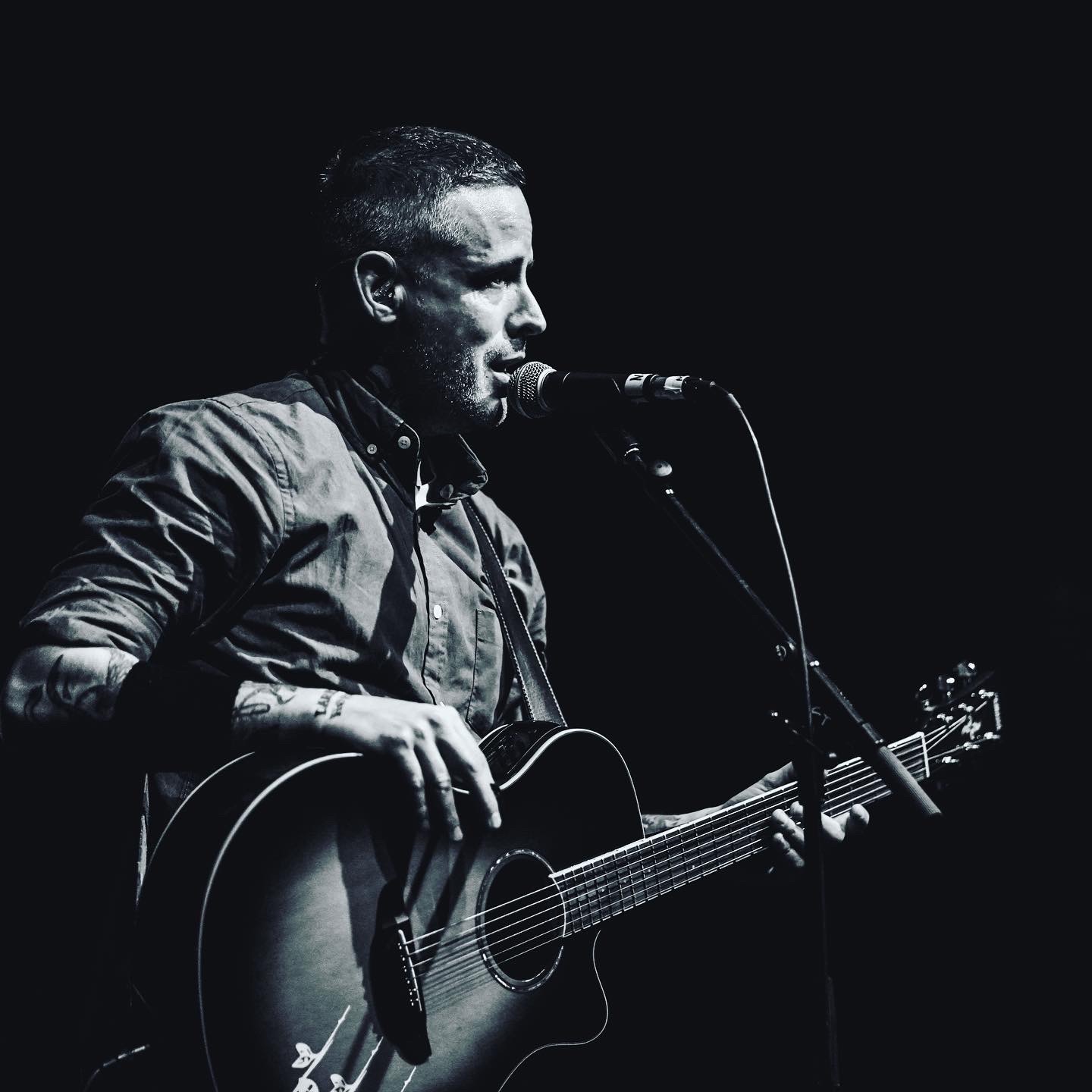 Als schließlich Nathan Gray mit seiner Band loslegte, die aus Musikern von Norbert Buchmachers Band bestand, hatte sich das Columbia Theater ordentlich gefüllt. Glücklich und ausgelassen lieferte der Boysetsfire Sänger vom ersten bis zum letzten Ton eine Show hin, die mitreißend, fröhlich aber auch nachdenklich war. Selbstverständlich verlor Nathan Gray einige Worte über Politik, Nächstenliebe und Selbstliebe. Auch nach seinem Set, das aus Titeln seines neuen Albums Working Title aber auch aus Songs von Feral Hymns bestand, nahm er sich wie man es von ihm gewöhnt ist, noch ausreichend Zeit, alle umarmungswütigen und gesprächsbereiten Fans glücklich zu machen. Unglaublich, wie professionell und stimmig die Musiker, die sich gerade einmal ein paar Tage vorher zur ersten gemeinsamen Probe mit Nathan Gray getroffen hatten, auf der Bühne zusammen spielten.
