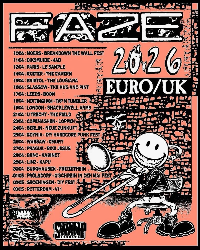 Die kanadische Hardcore/Punk-Band Faze wird ab April in Europa auf Tour sein. Starten wird die Band aus Montreal beim Break Down The Walls Festival in Moers. Weitere Auftritte im deutschsprachigen Raum folgen in Berlin, Linz, Burghausen und Prölsdorf.